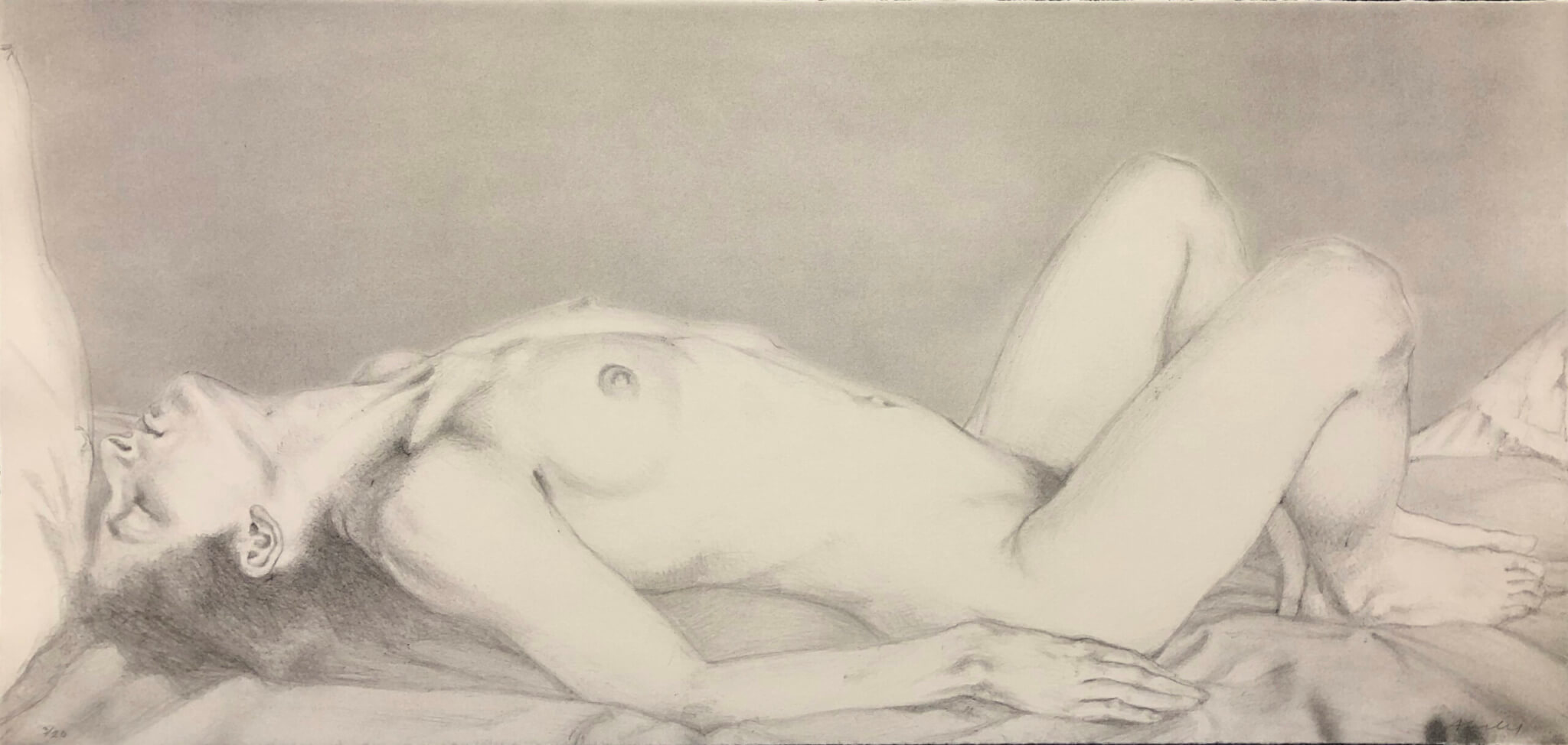 Stone lithograph, signed in pencil and annotated “3/20”, printed on heavy fine-grained, gray wove paper, without margins.