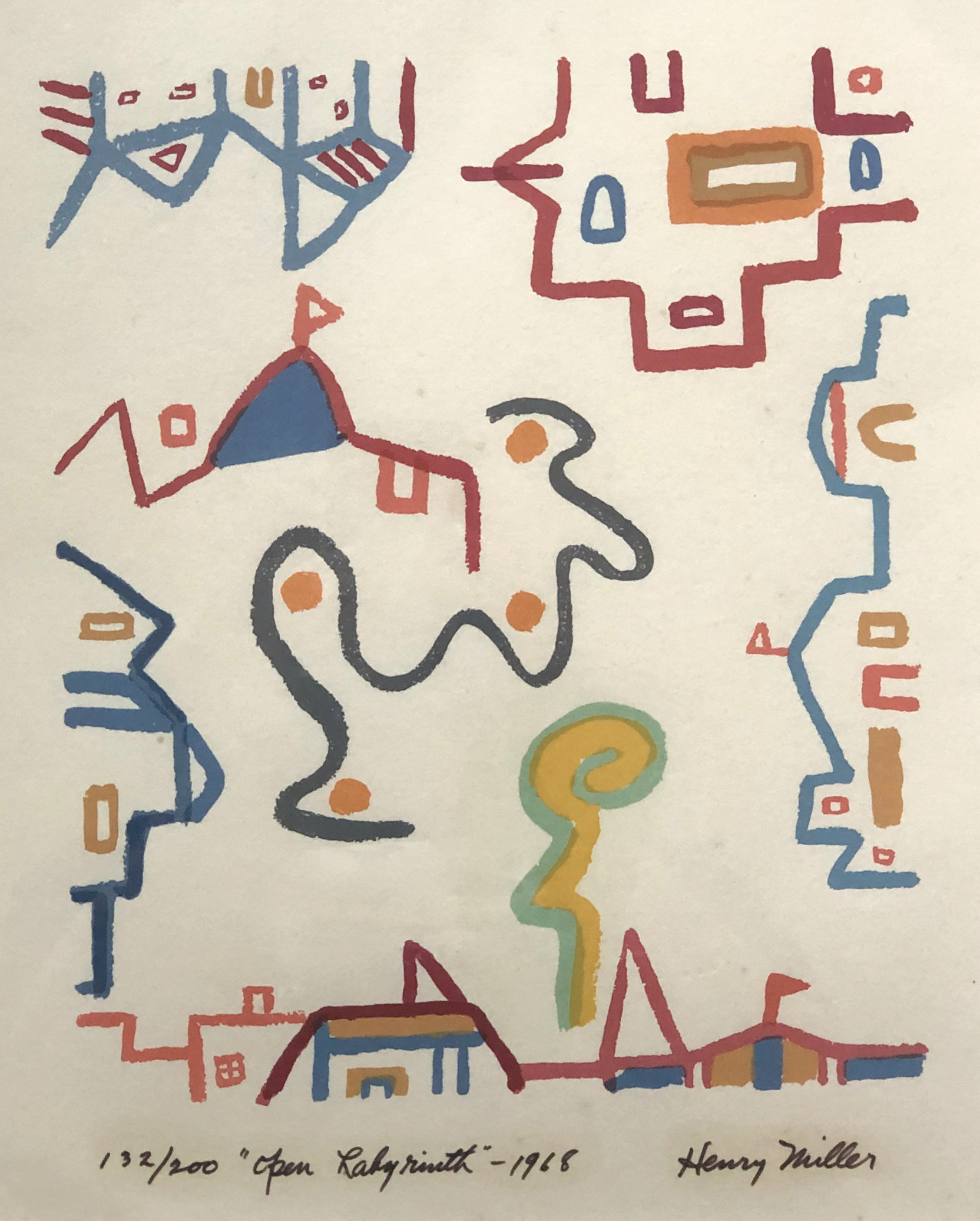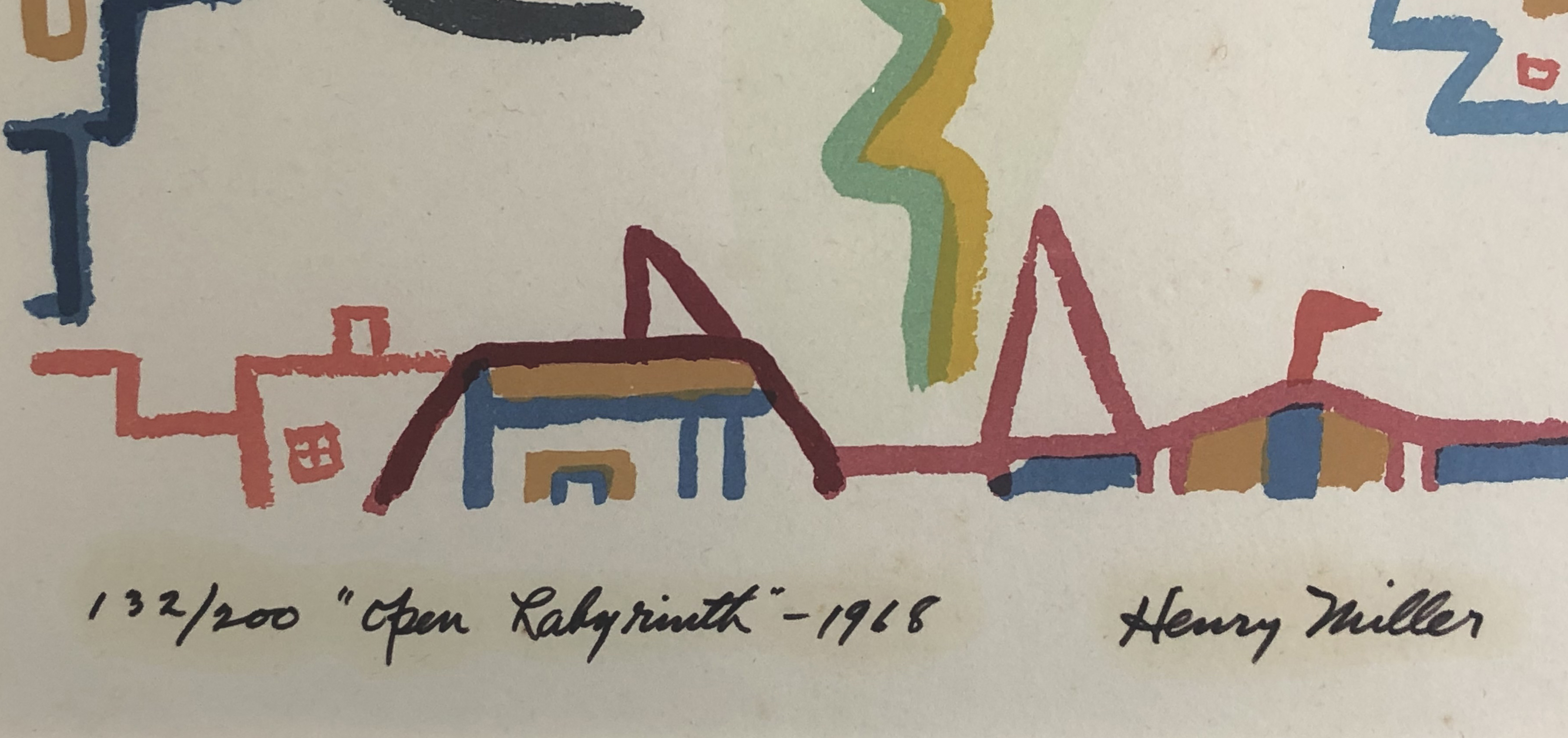 NotesIn addition to his enormous literary abilities, Miller produced numerous watercolor paintings and and issued prints (serigraphs) derived from those watercolors. He was a close friend of the French painter Grégoire Michonze. It is estimated that Miller painted 2,000 watercolors during his life, and that 50 or more major collections of Miller's paintings exist. The Harry Ransom Center at the University of Texas at Austin holds a selection of Miller's watercolors, as did the Henry Miller Museum of Art in Ōmachi City in Nagano, Japan, before closing in 2001. Miller's daughter Valentine placed some of her father's art for sale in 2005.