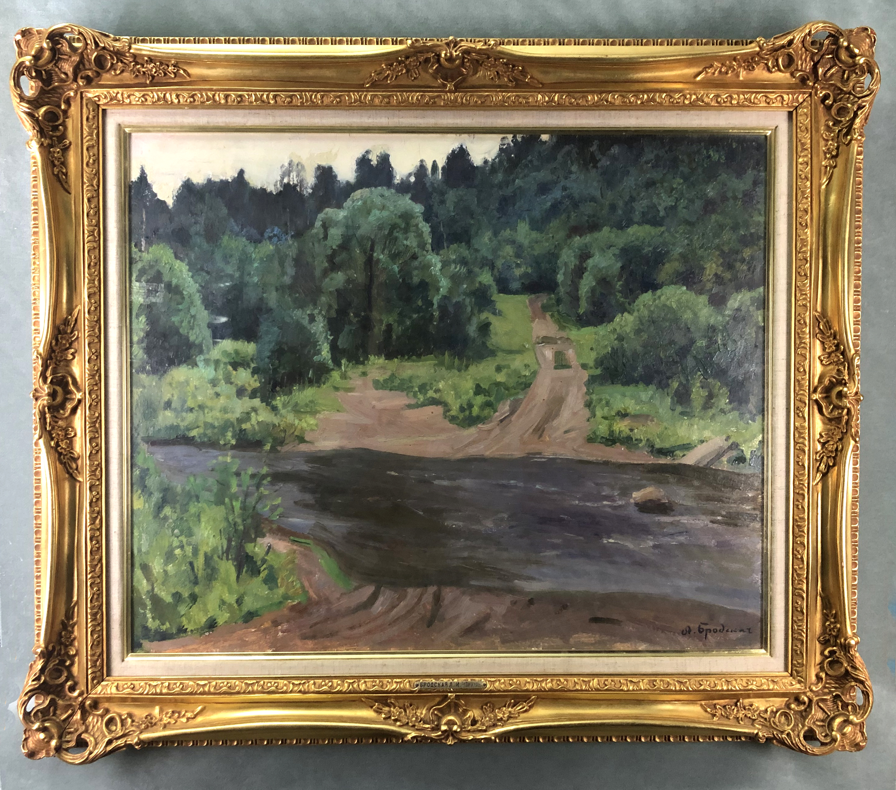 NotesLidya Brodskaya was born in St. Petersburg in 1910. She Studied with her father, the artist Isaak I. Brodsky and later with Nikolai P. Krymov. From 1935 to 1939 she was a volunteer at the Russian Academy of arts in her father’s workshop. Participant in art exhibitions since 1945, she traveled all over the country in the mid-1950s painting landscapes.