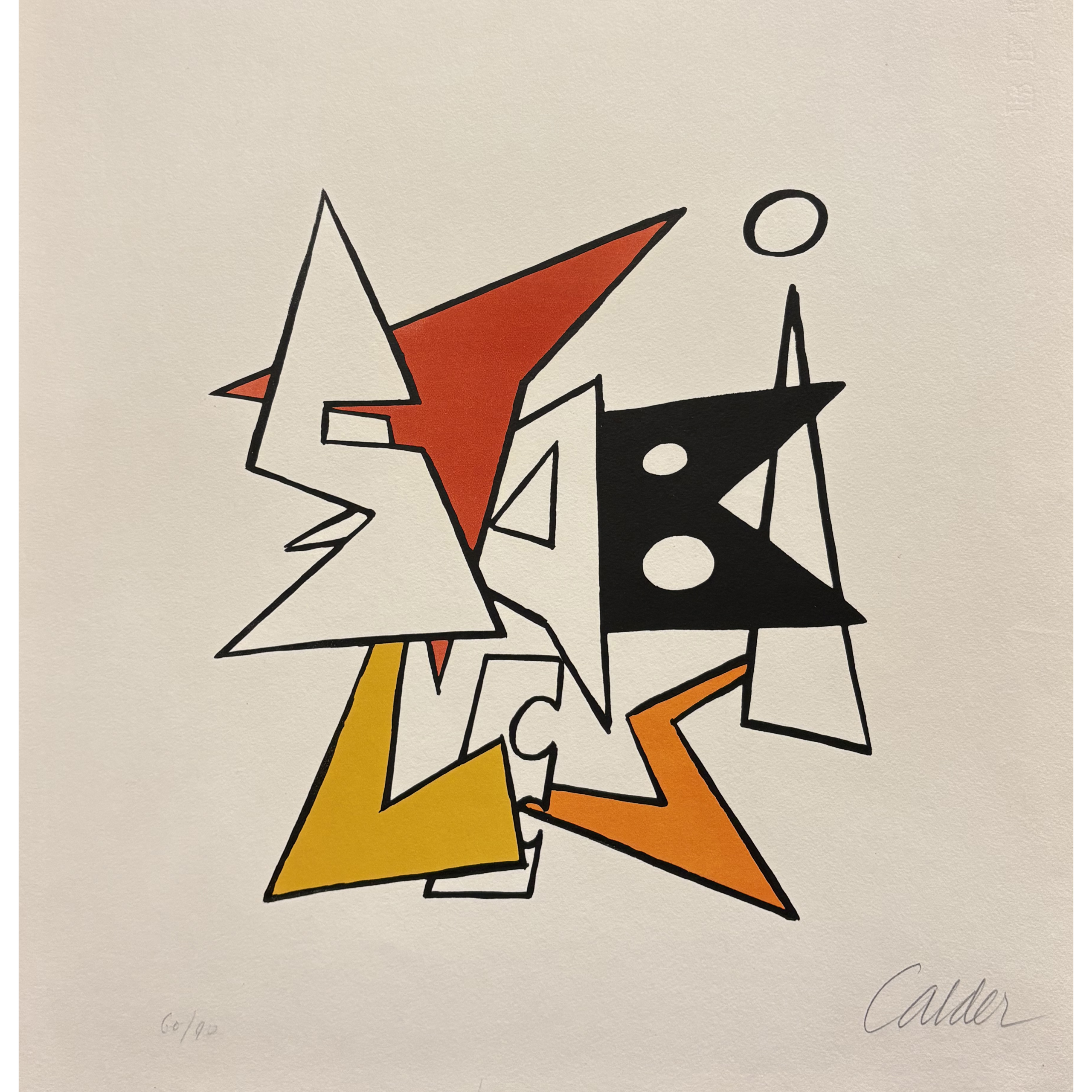 Alexander Calder "Mobiles" were shown at the Galerie Vignon in Paris in 1932. The "Mobiles" were Calder?s most prefered form of art. The precisely balanced constructions, moved either by a natural force, wind, or by touch became more complex and abstract over the years. Early in Calder?s career he constructed very few sculptures that moved by a small motor. Alexander Calder also created "immobiles[s]" which were monumental constructions of sheet metal, that Jean Arp termed to be "Stabile[s]". He passed away in 1976 in New York.