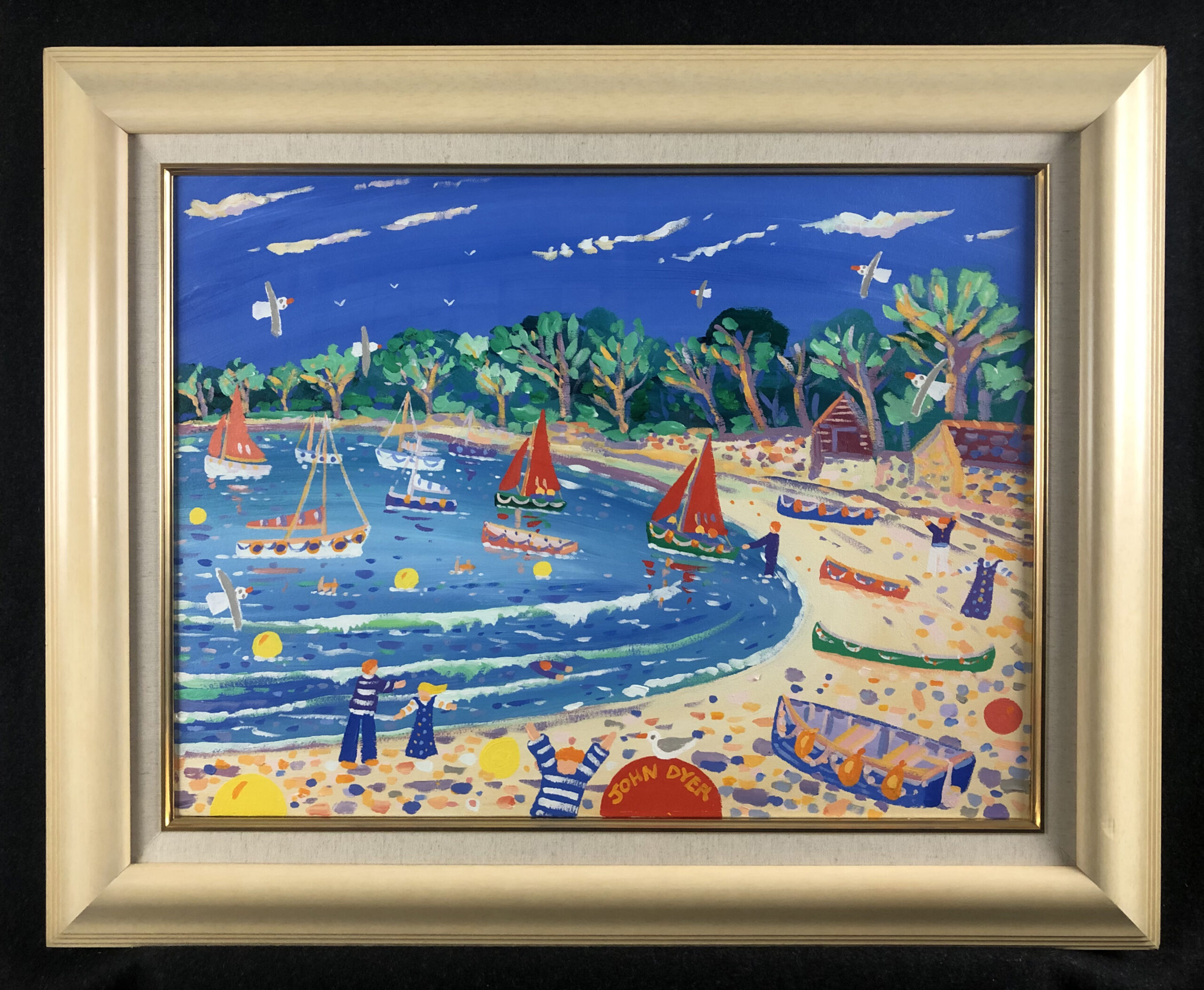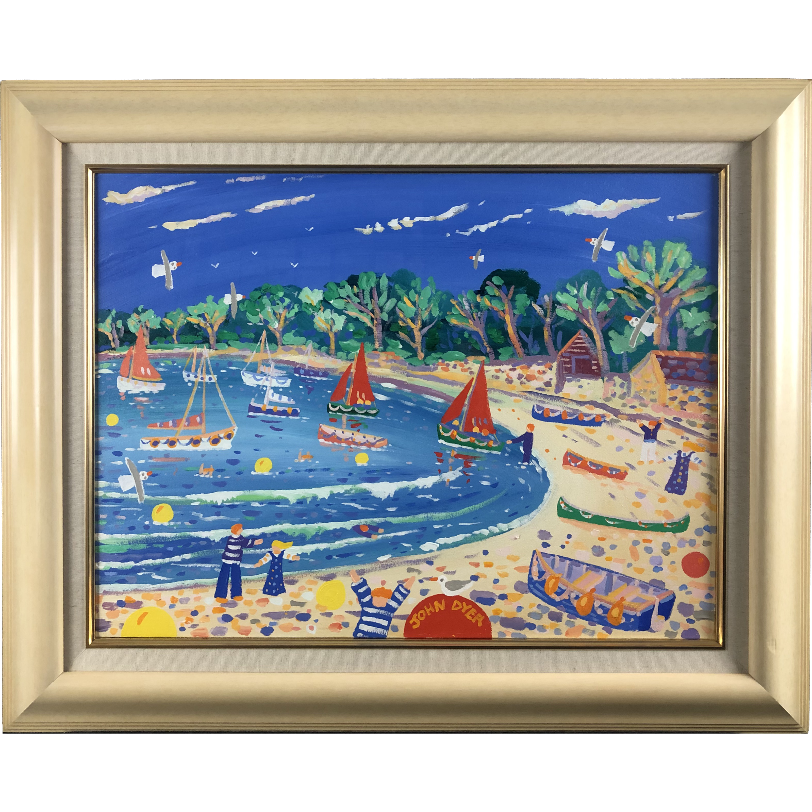 After being awarded a travelling bursary to Brazil from Thames Television John was inspired to use bold colours and imagery. His palette has a bright Mediterranean or Caribbean feel and the paintings are full of fun, happiness and humour.