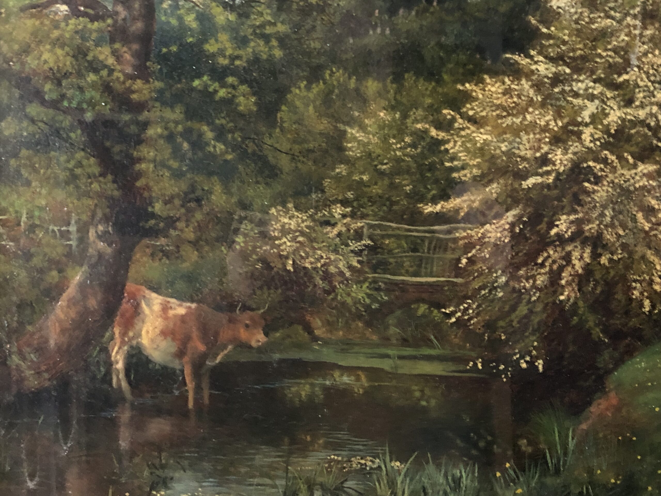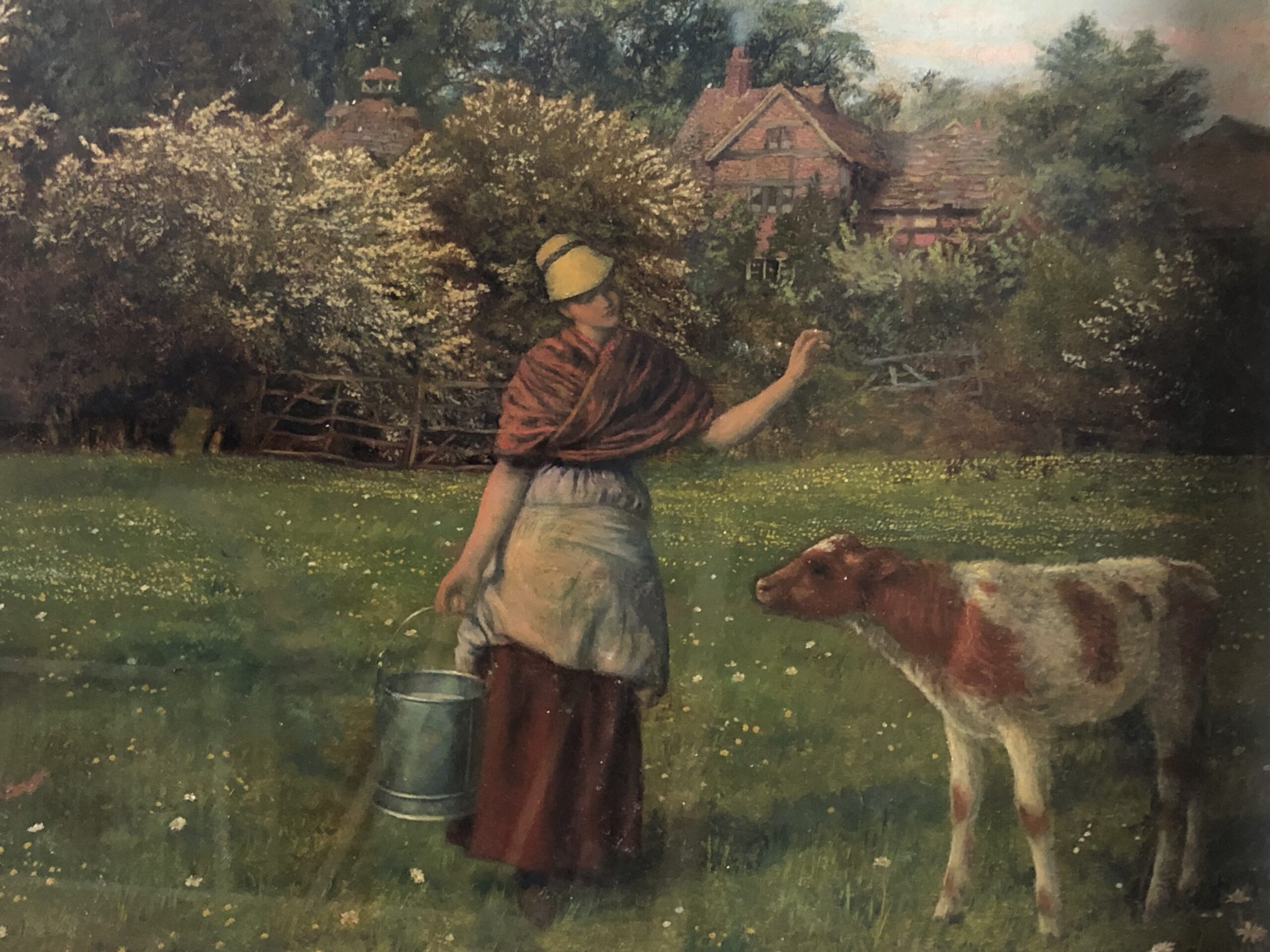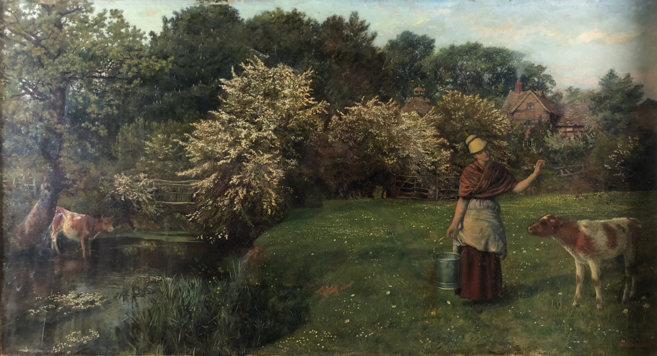 This painting was originally painted as a landscape without the milkmaid, John Trist asked the artist to add the milkmaid after his purchase in 1871.