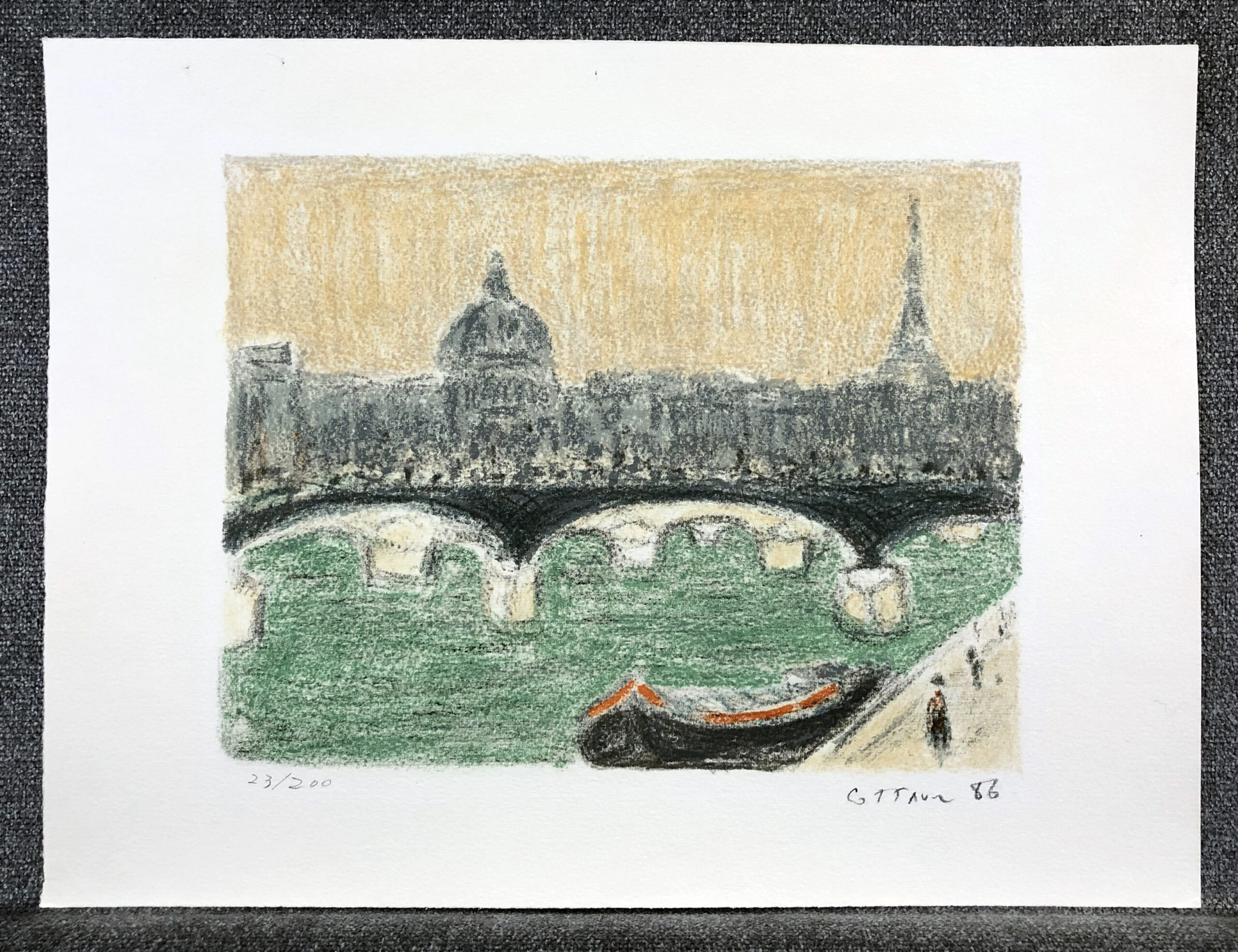 Color lithograph, signed and dated in pencil and annotated “23/200”, printed on heavy, felt-finish, white wove paper. Fine condition, small tape residue on verso. Free shipping to US address.