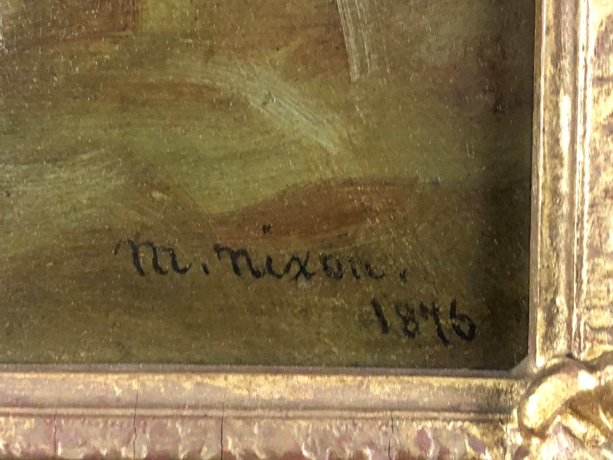Oil on Canvas, signed M. Nixon and dated 1876 at lower right.