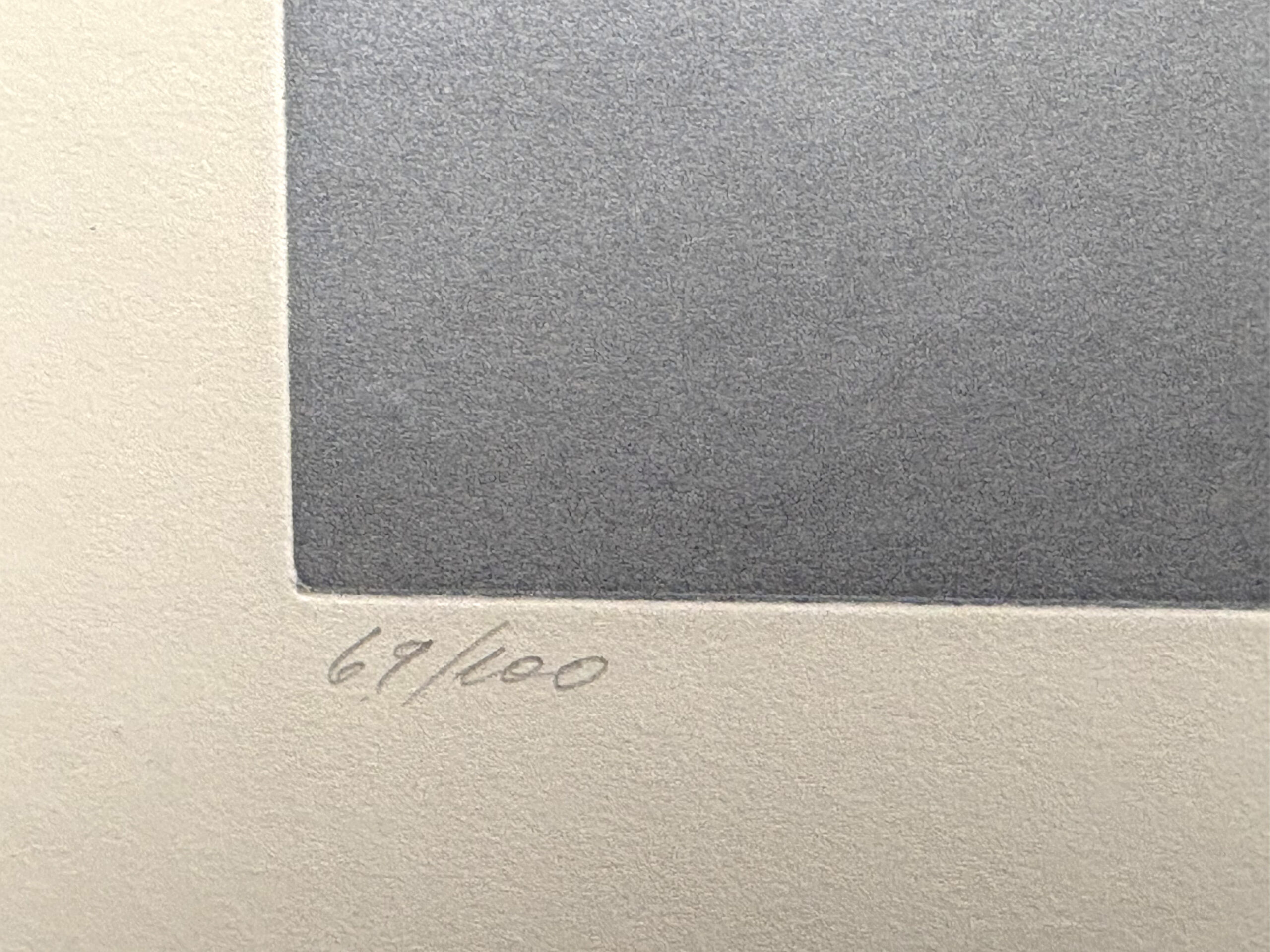 Color etching, signed in pencil and annotated “69/100”, printed in black on a uniform silver background, on heavy, felt-finish, pale-cream wove Lana paper. Plate 1 from the series Les Anatomes, published by Editions Georges Visat, Paris, 1970.