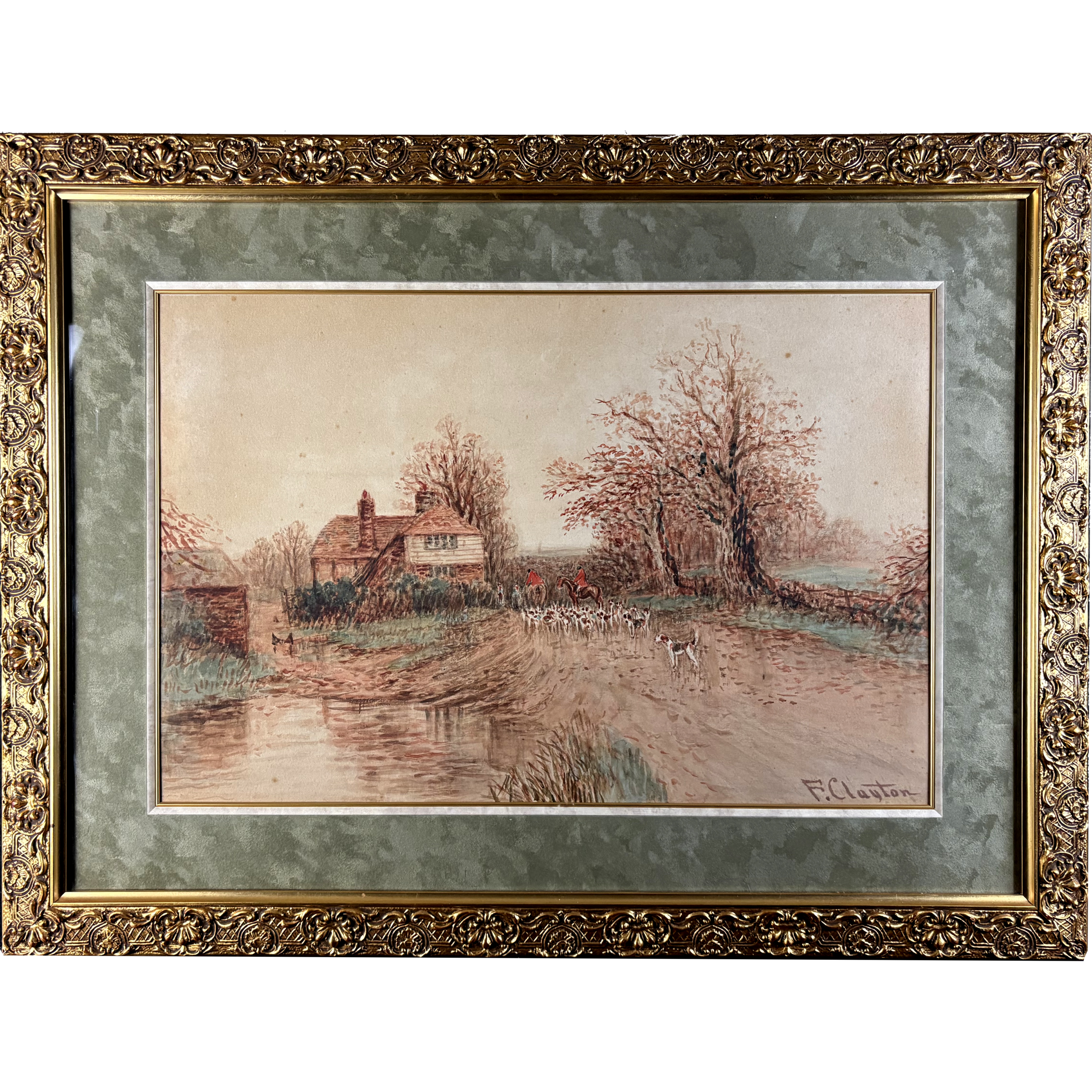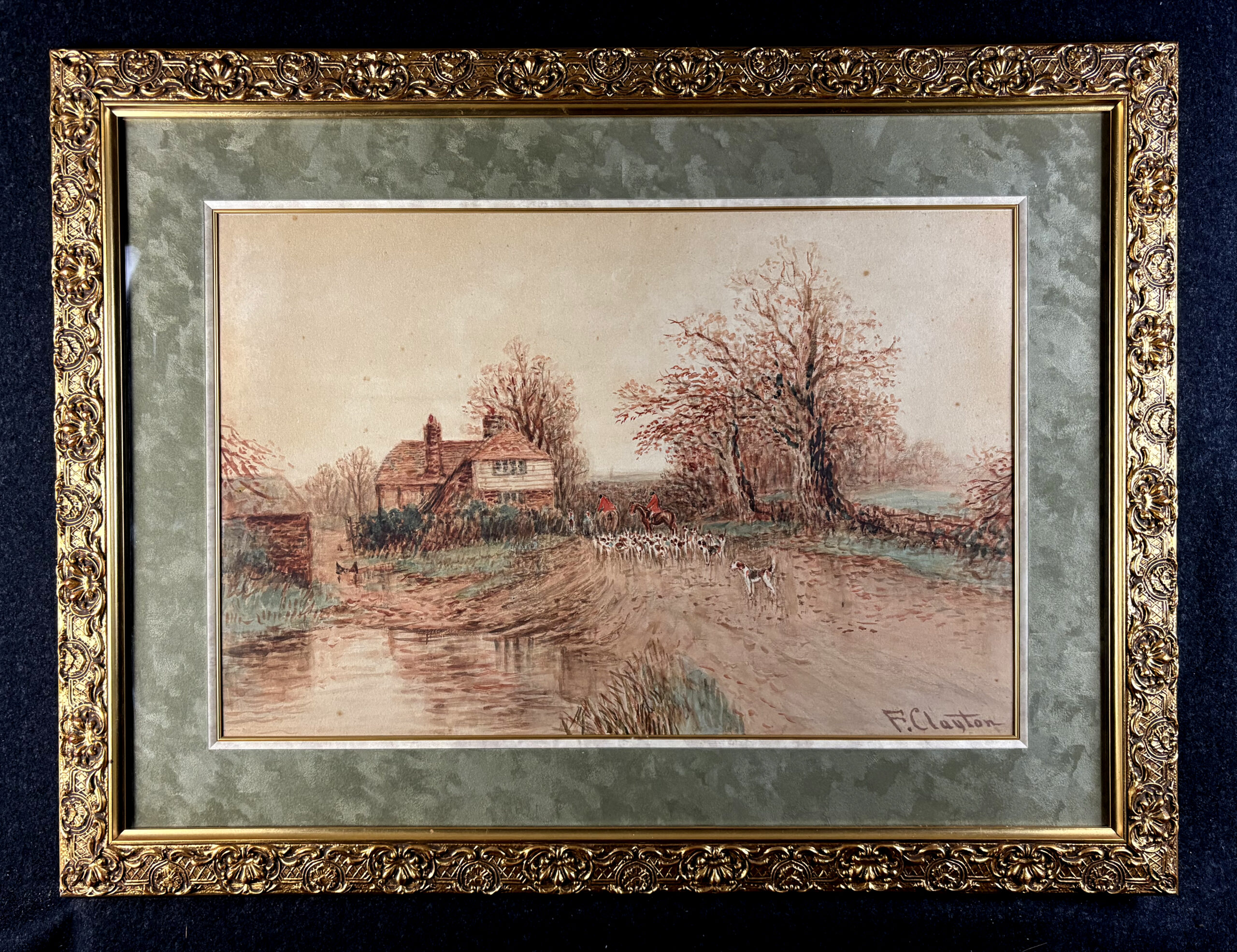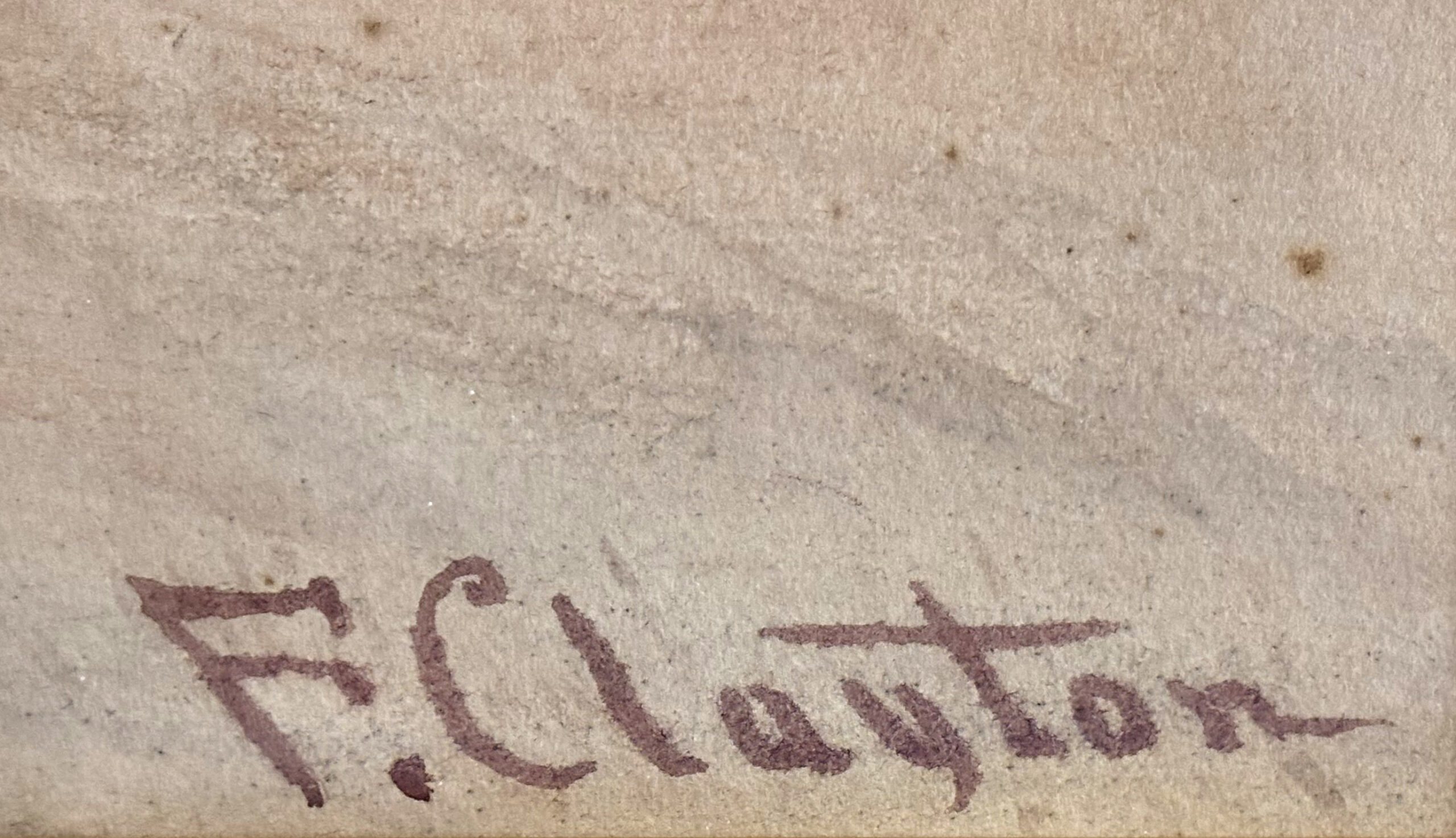 Watercolors on thin paper board, signed “J. Clayton” lower right.