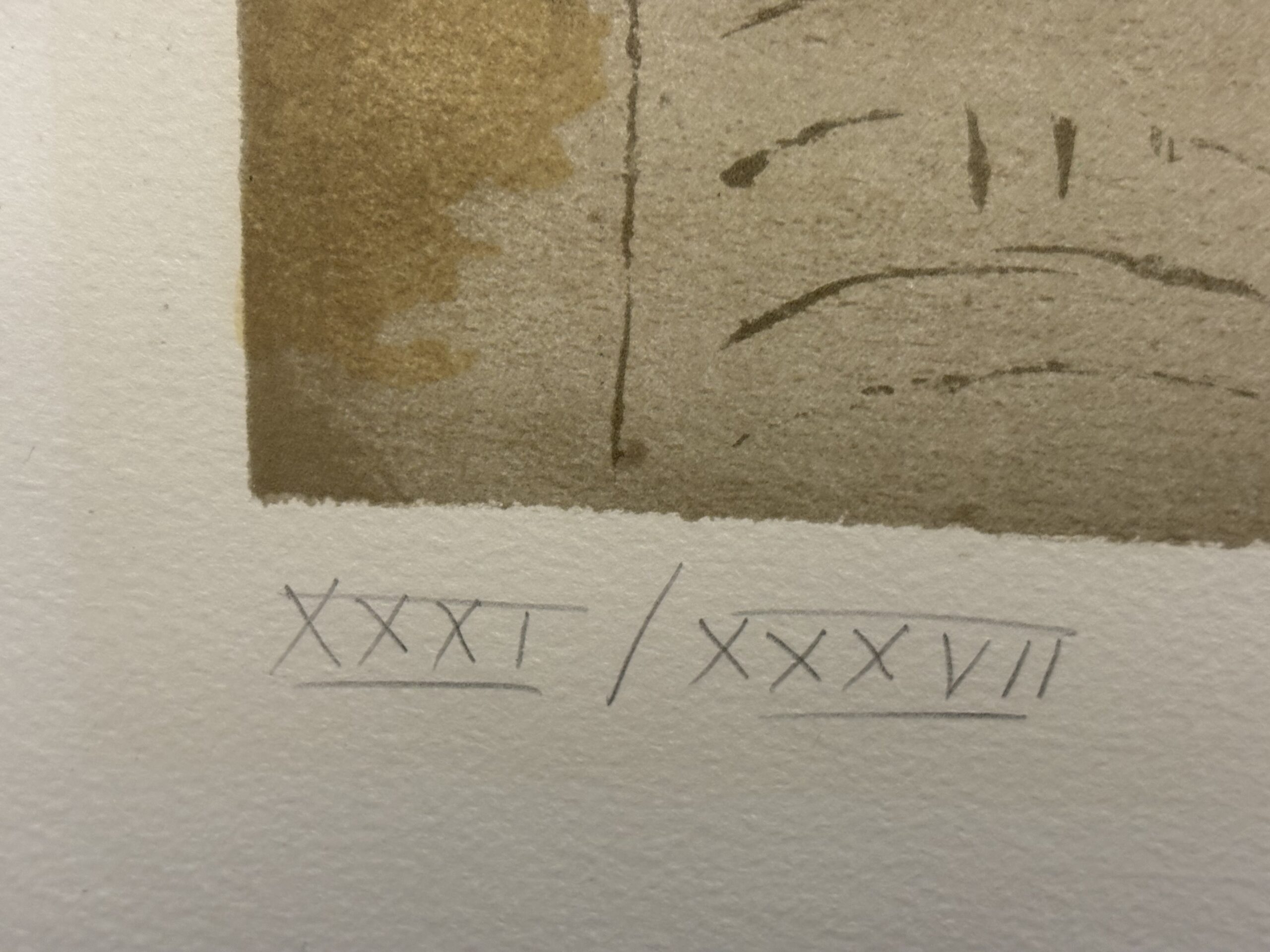 Color lithograph, signed in pencil with the monogram, editioned “XXXI/XXXVII”, printed on heavy, felt-finish, cream, wove Arches paper.