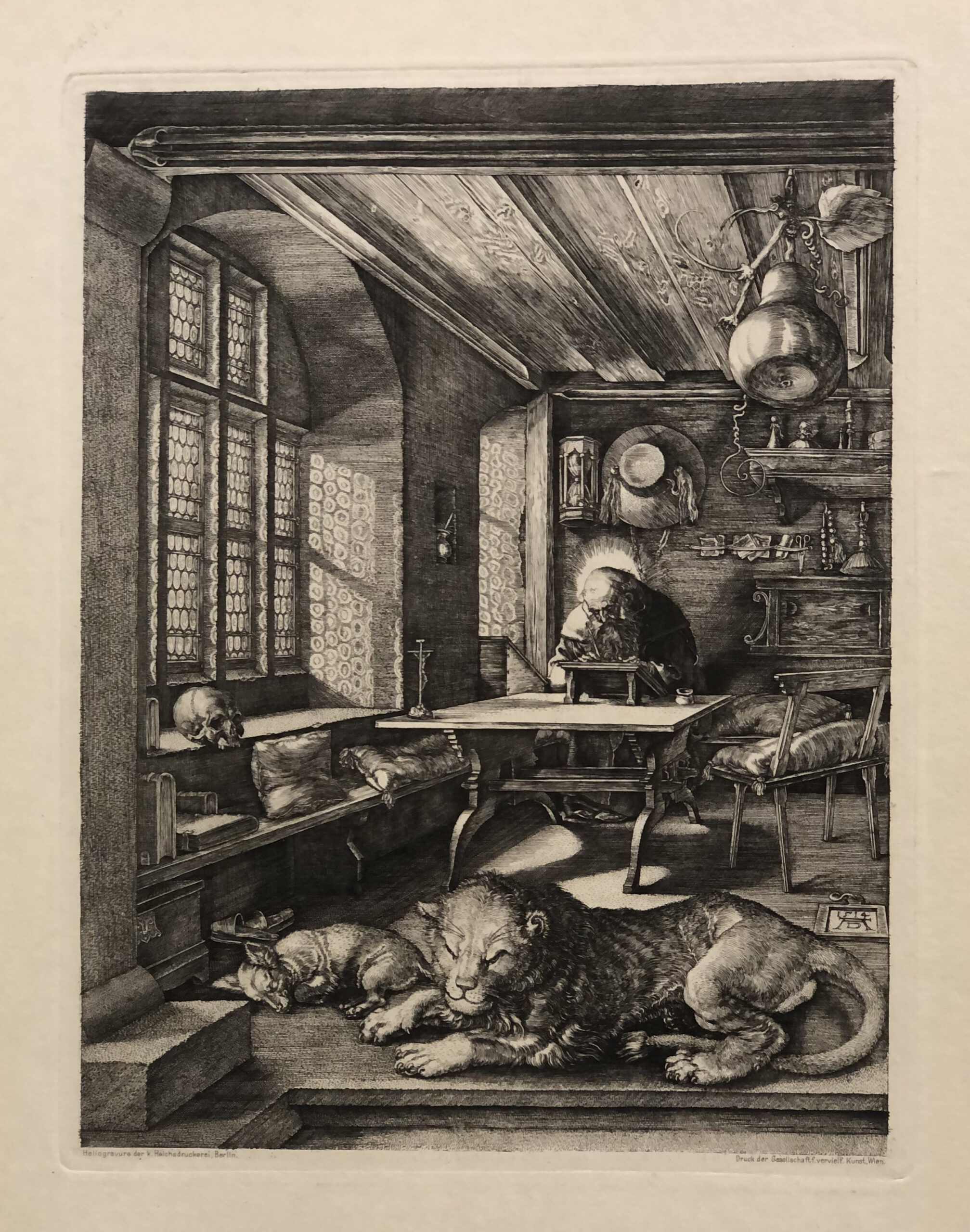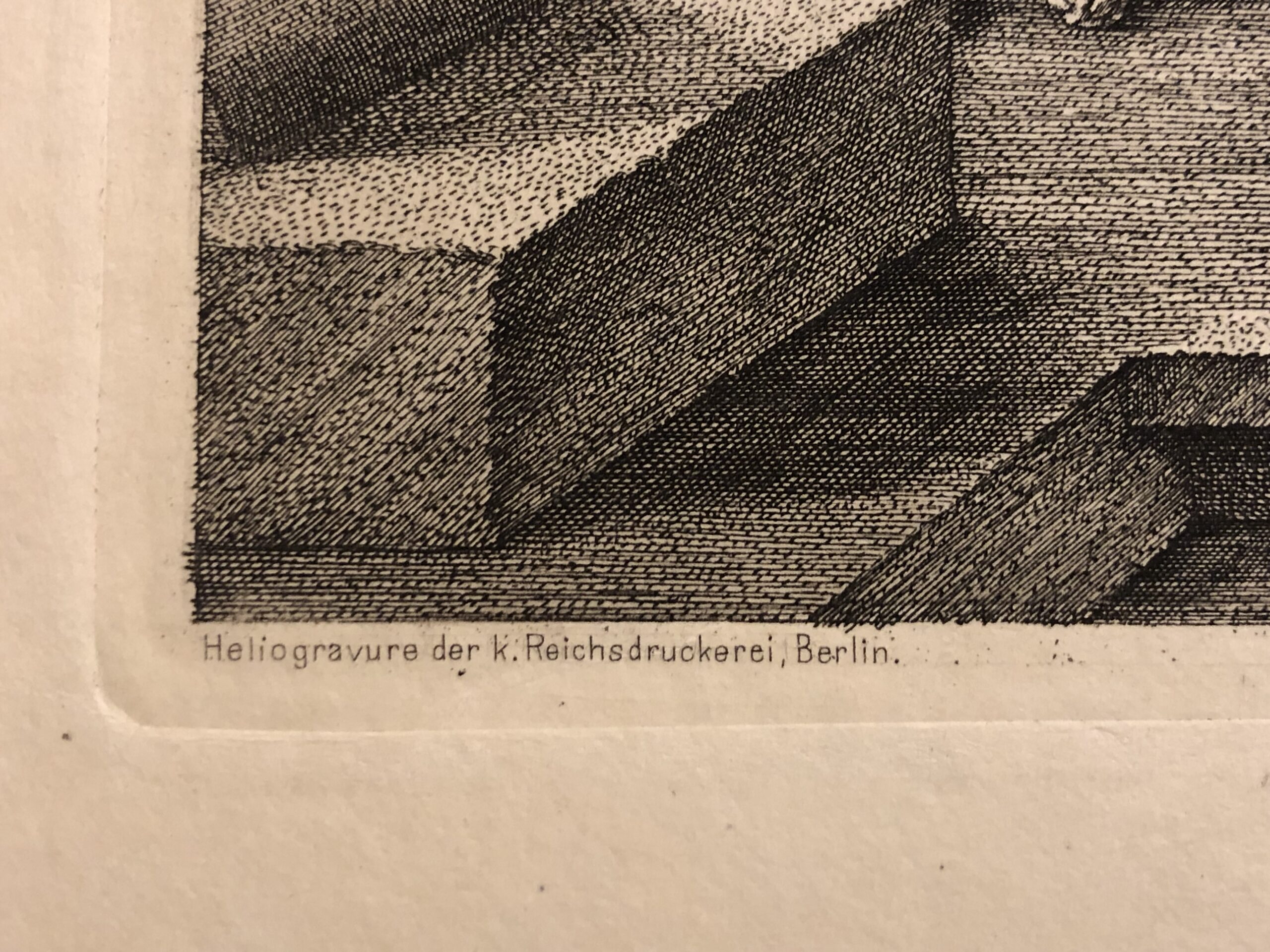 Heliogravure after the engraving 0f 1514, printed on buff colored, imitation parchment paper. Published by the Gesellschaft für vervielfältigende Kunst, ca. 1880. Fine condition. Free shipping to US address.