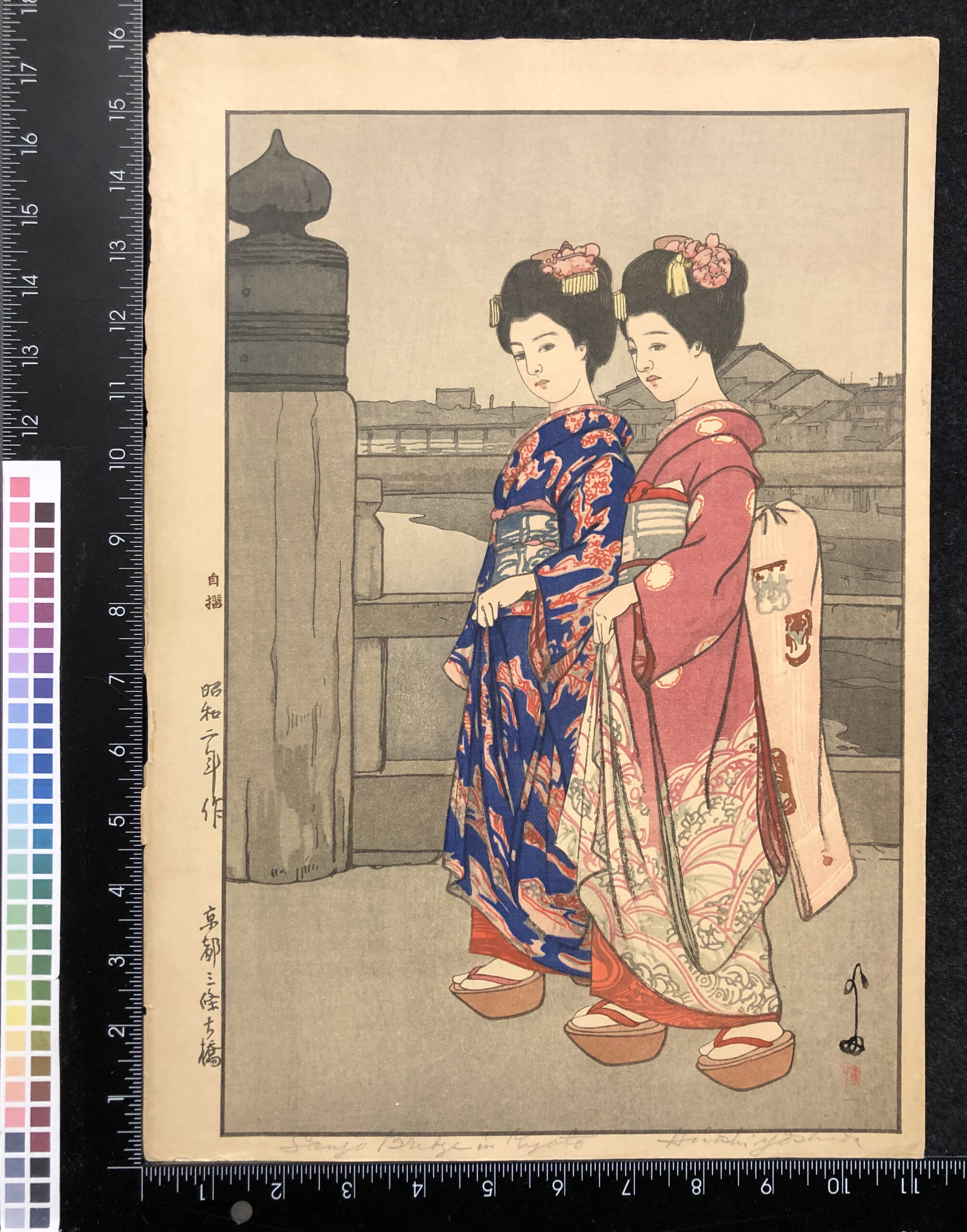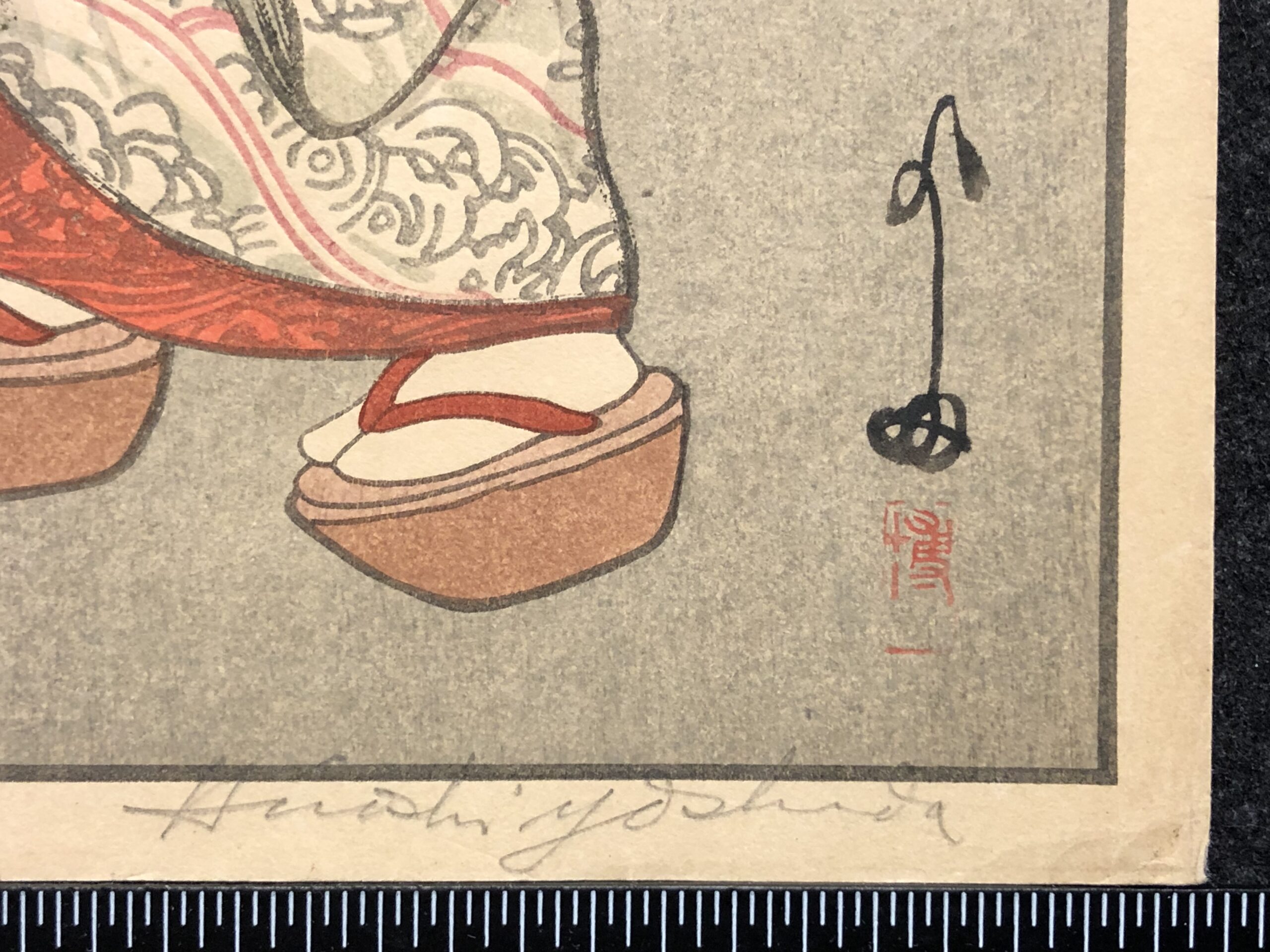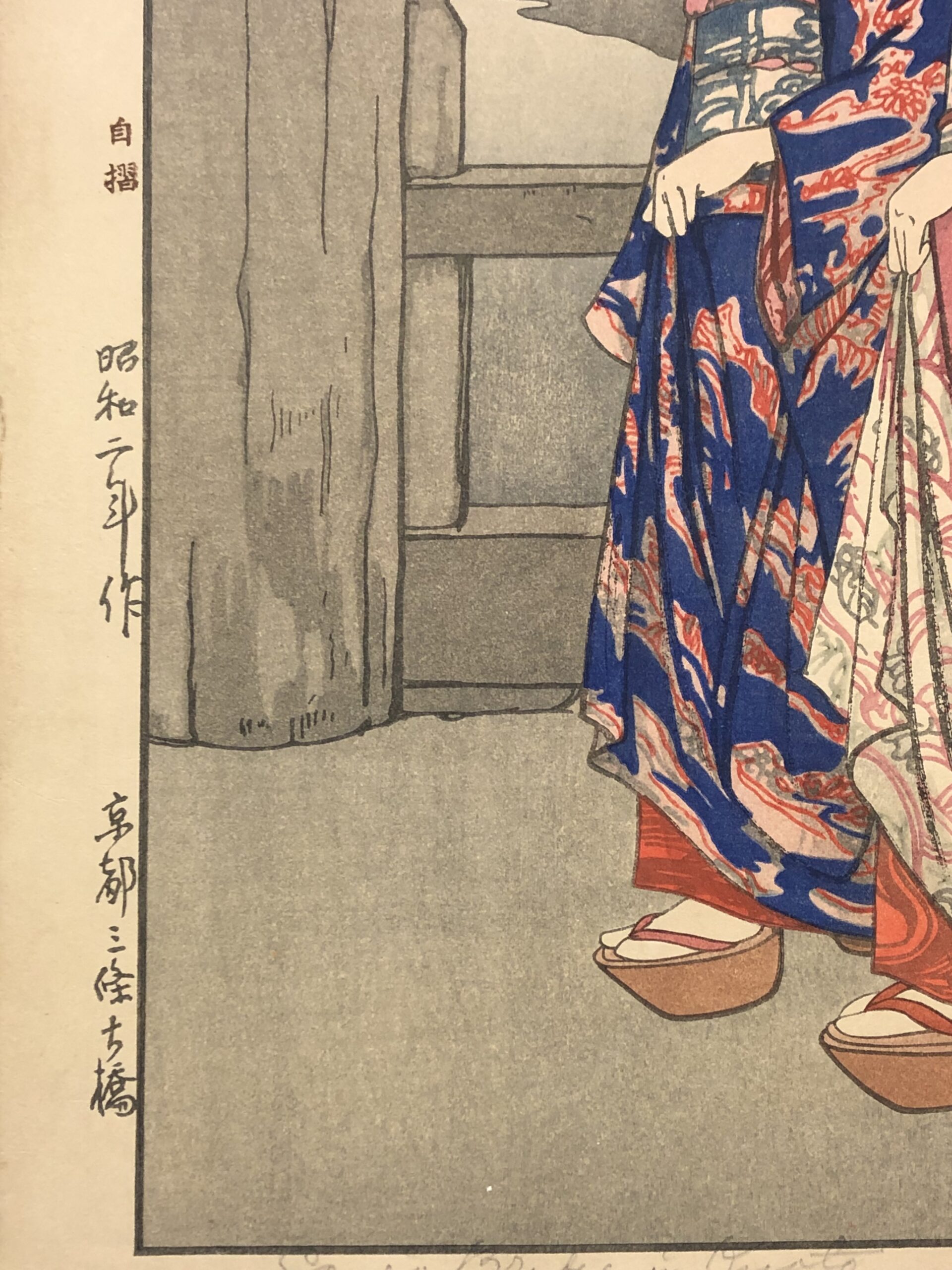 Polychrome woodblock print, oban size, printed on thin Japan kozo paper. Signed and titled in pencil, printed by Yoshida himself – so stated in the left margin.