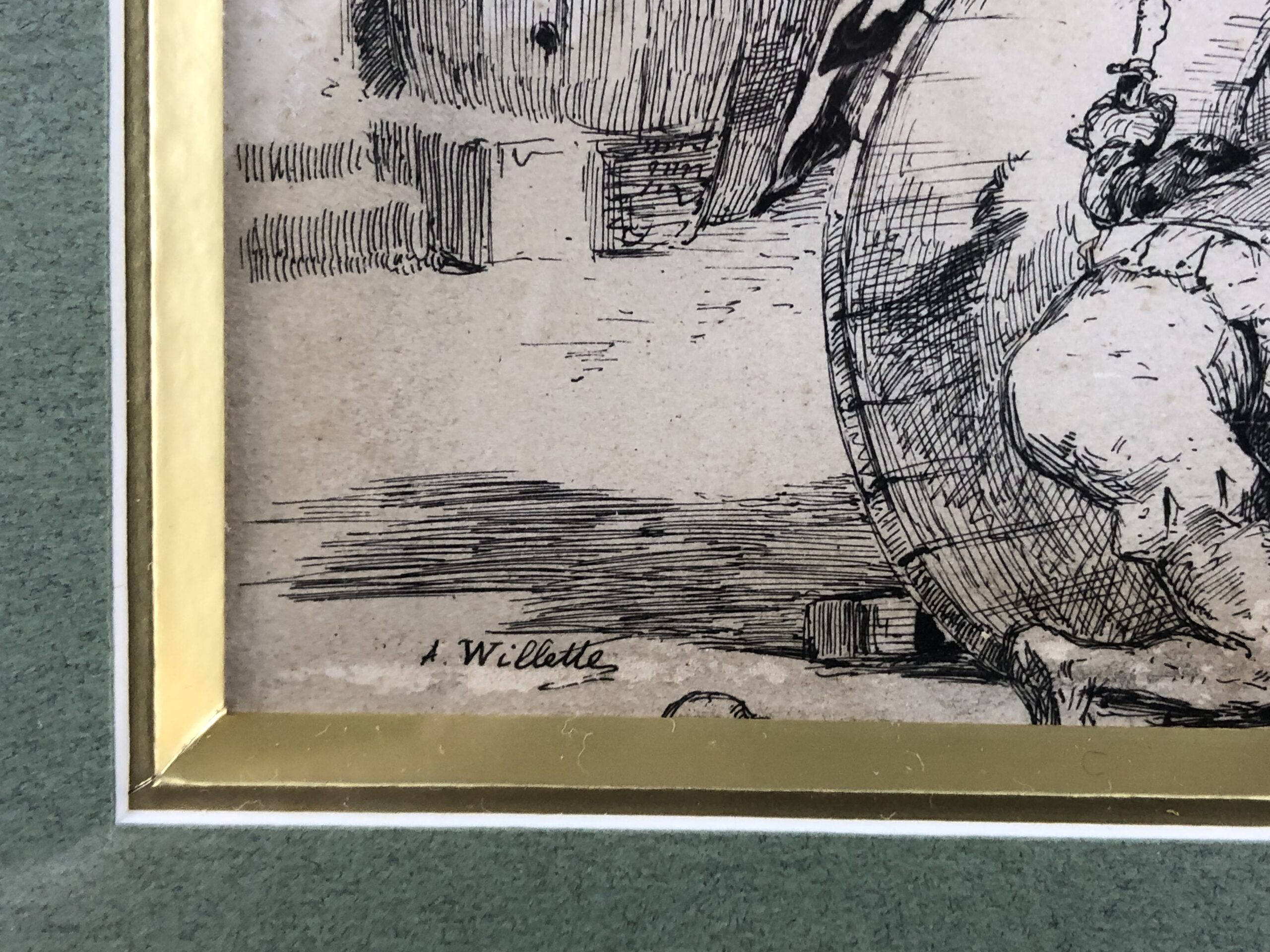 Willette studied for four years at the École des Beaux-Arts under Alexandre Cabanel. His graphical work ranged from dainty triviality or political satire: he made Pierrot an imaginary hero of France, and established Mimi Pinson as frail, lovable, and essentially good-hearted. He could also be bitter and fierce, a partisan of political ideas. The guillotine and the figure of Death appear in his caricatures. At the time of the Dreyfus affair he was an anti-dreyfusard; with Jean-Louis Forain, he moved to the political right.