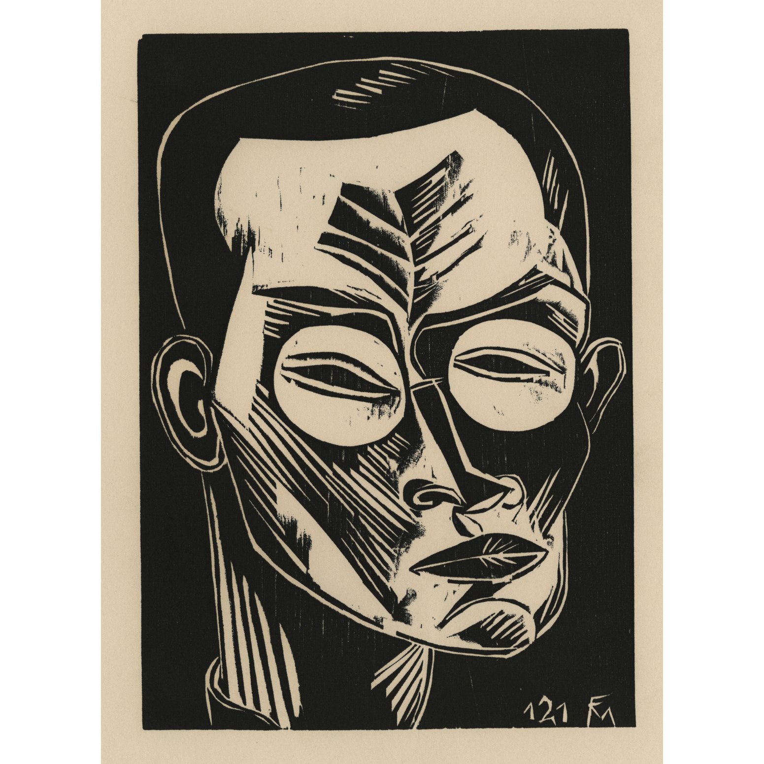 Original woodcut, Plate 24 from Deutsche Graphiker der Gegenwart, unsigned, printed on soft cream wove paper, with letterpress title and credits on verso. Published in Georg Pfister, ed. Deutsche Graphiker der Gegenwart (Leipzig: Klinkhardt & Biermann, 1920, pl. 24), edition: 600