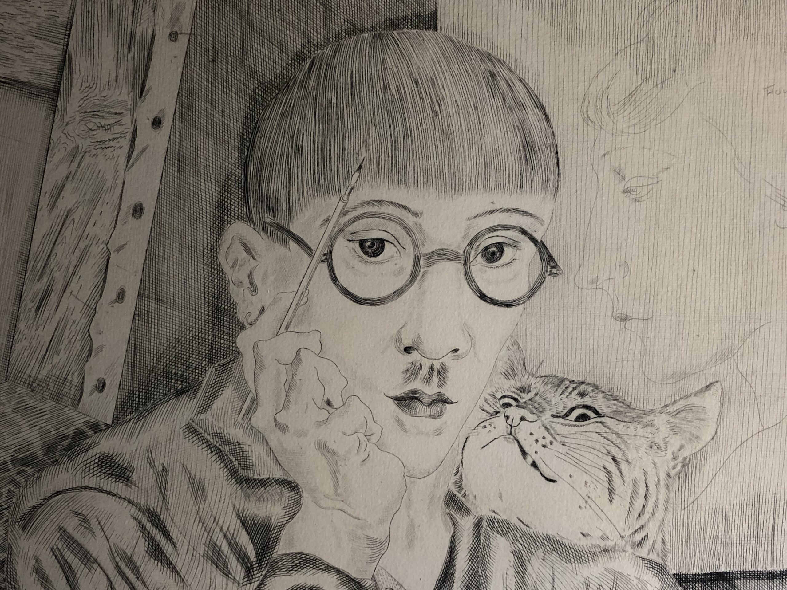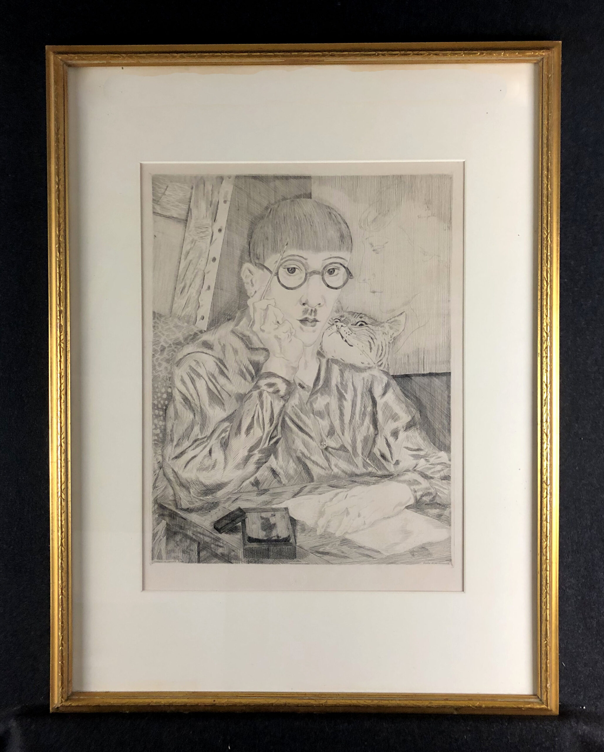 NotesAfter classical studies, this son of a samurai entered the Tokyo School of Fine Arts where his talent was often rewarded. At a very young age, he became interested in images imported from Europe and enrolled in French classes while devoting most of his time to drawing and painting. However, his Western style and his too independent character disturbed him. Eager for freedom, he left Japan in August 1913. After a short stay in London, he settled in Paris where he quickly became one of the picturesque figures of Montparnasse. He frequented social circles and met many artists such as Picasso, Soutine, Van Dongen, Modigliani, Chagall. From 1930 to 1950, he divided his life between travels where he met success and esteem: in England, Belgium, Holland, Switzerland, Italy, Germany, the United States and its two emotional capitals: Paris and Tokyo. Foujita's success grew. His style is balanced between a decorative figuration with pure and delicate forms of Japanese vocabulary and Western modernity. Foujita would say of himself: I am different from others because I am Japanese and short-sighted. He drew his subjects from children and cats and, in love with himself and women, he multiplied self-portraits and portraits. In 1955, he adopted French nationality. Buddhist, he converted to Catholicism and was baptized at the age of 73 in the cathedral of Reims, named after Leonardo in homage to Vinci. In 1968, he died of cancer in Zurich.