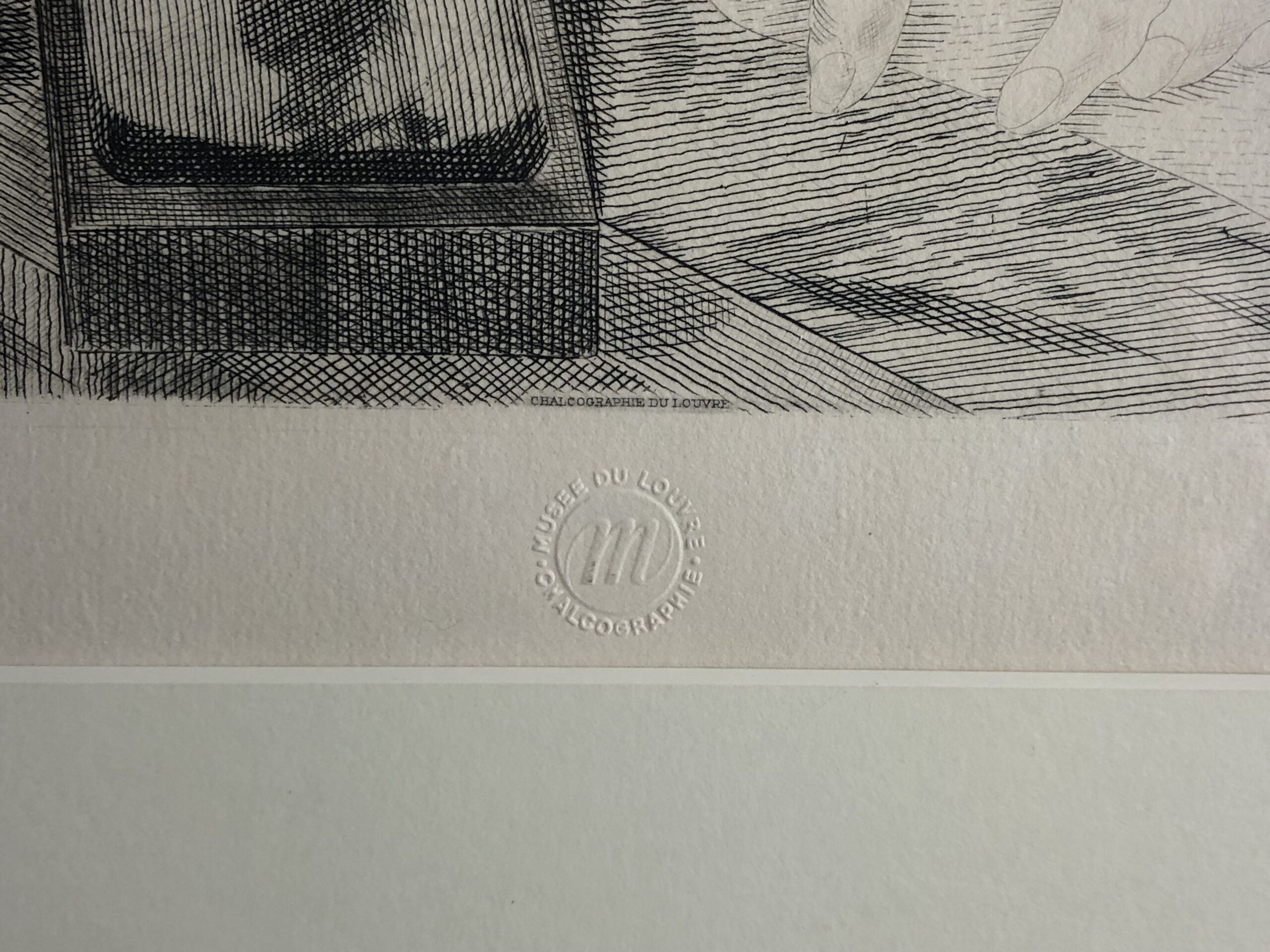 Etching, unsigned, printed and published by the Chalcographie du Louvre, with the Chalcographie script “m” in a circle embossed stamp below the image center.