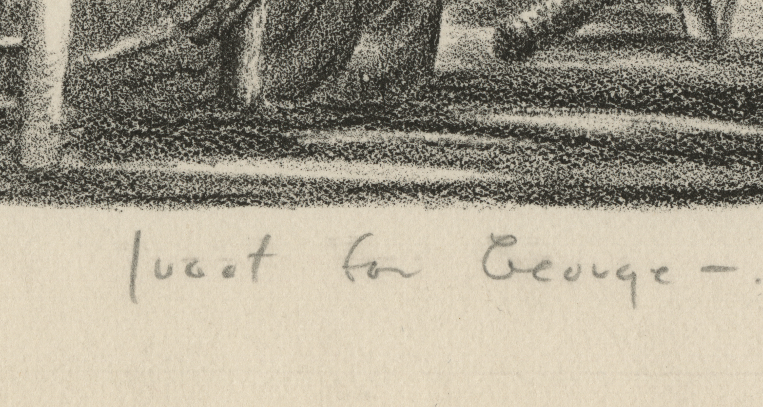 Stone lithograph, signed and dated in pencil and annotated with title and “Proof for George” (Miller), printed on fine-grained, cream, wove paper, watermarked “Les Bibliophile”, 1.2 – 1.6 inch margins, printed by George Miller. Plate LXXXI. Fine condition, minor handling creases, linen tape hinge remnants, verso. Free shipping to US address.