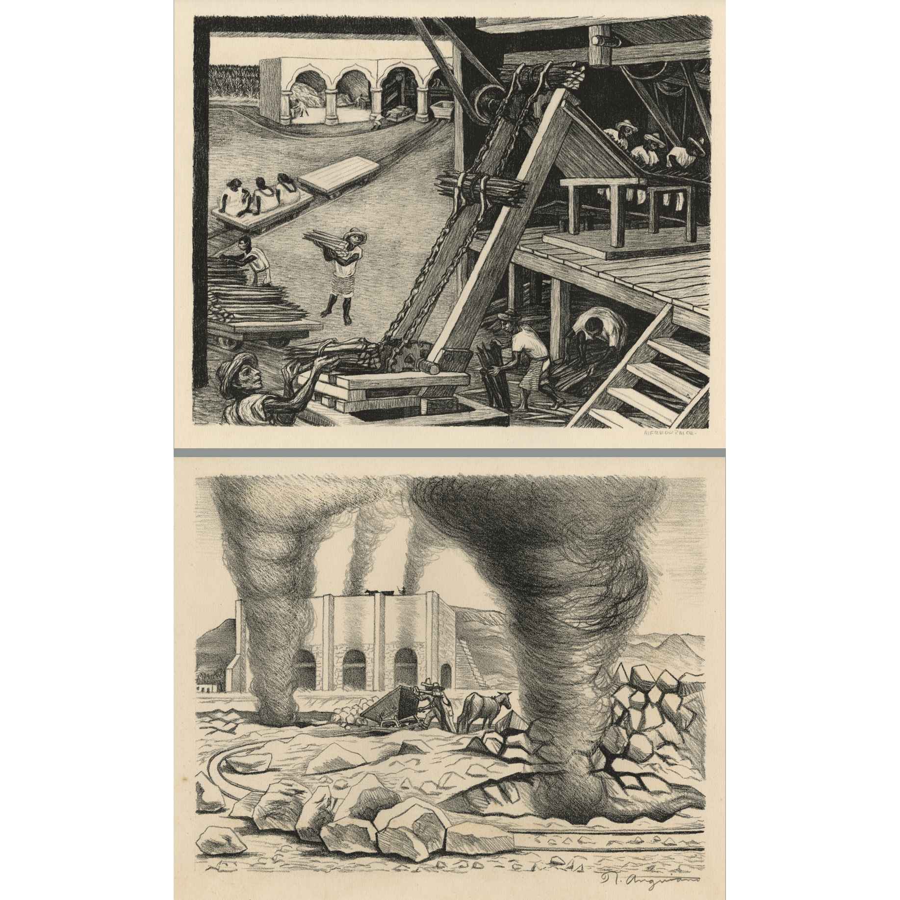 Two lithographs from the Mexican People Portfolio, published by Taller de Grafica Popular, 1945.