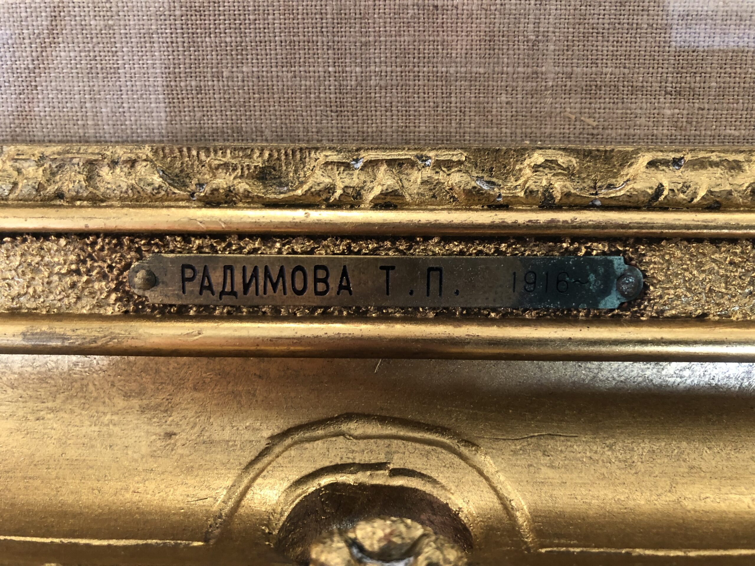NotesTatyana Pavlovna Radimova was born on December 16, 1916 in Ryazan, Ryazan oblast. Honored worker of culture of Russia, member of Moscow Union of artists (member of the Union of artists of the USSR). Daughter of the famous artist Paul Radimov, the last Chairman of the Peredvizhniki group. She studied at MGHI under V. I. Surikov to 1941. Worked in Moscow. Participant of exhibitions since 1934 Permanent Exhibitor of the Moscow, regional, Republican and all-Union art exhibitions. From her father she inherited the talent of a landscape painter. The main theme of creativity is landscapes of the Russian province. She was a member of the Abramtsevo community of artist in the outskirts of Moscow. She also wrote poems and authored the book about her father the artist P. Radimov. Works of the artist are in the Tretyakov Gallery, in many regional museums.