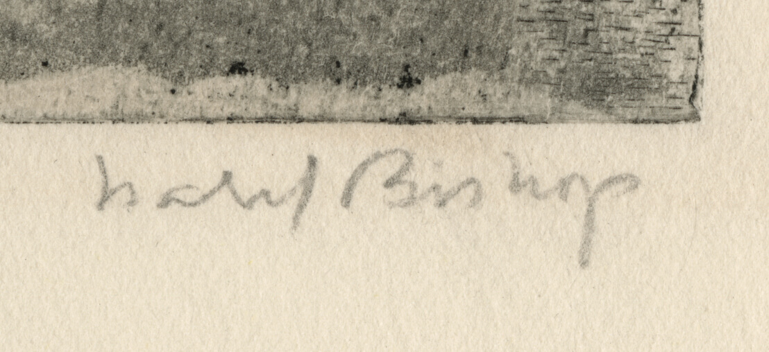 Bishop's mature works mainly depict the inhabitants of New York's Union Square area. Her portraits are often studies of individual heads (see Laughing Head, 1938, Butler Institute of American Art); the emphasis securely on the subject's expression – or of solitary nudes. Bishop was also a pioneer in multiple-figure compositions, often containing two females engaged in various workday interactions. In the post-war years, Bishop's interest turned to more abstracted scenes of New Yorkers walking and traveling, in the streets or on the subways. Her signature changed many times over her career, ranging from the use of various pseudonyms to initials; some early pieces are signed I.B, or I. Bishop in both block and script. Her work remains significant as an example of the thematic concerns of the Fourteenth St. School, as well as her contribution to feminism and the "new woman" emerging in urban landscapes.