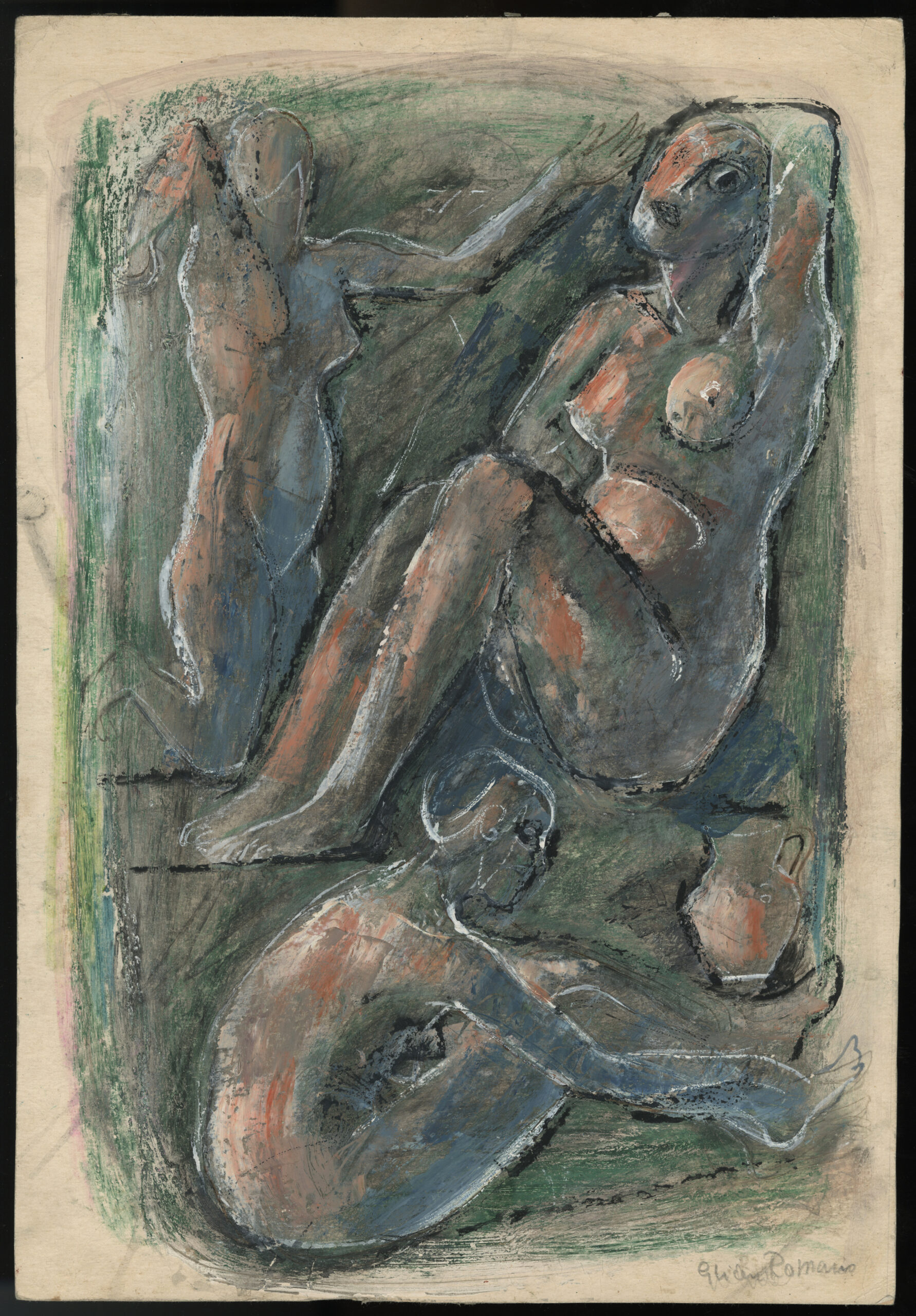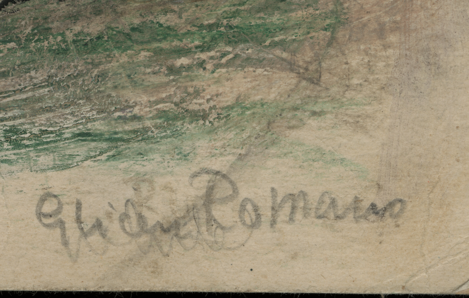 Graphite, watercolors, gouache on wove paper, signed “Glicen Romano”, lower right.