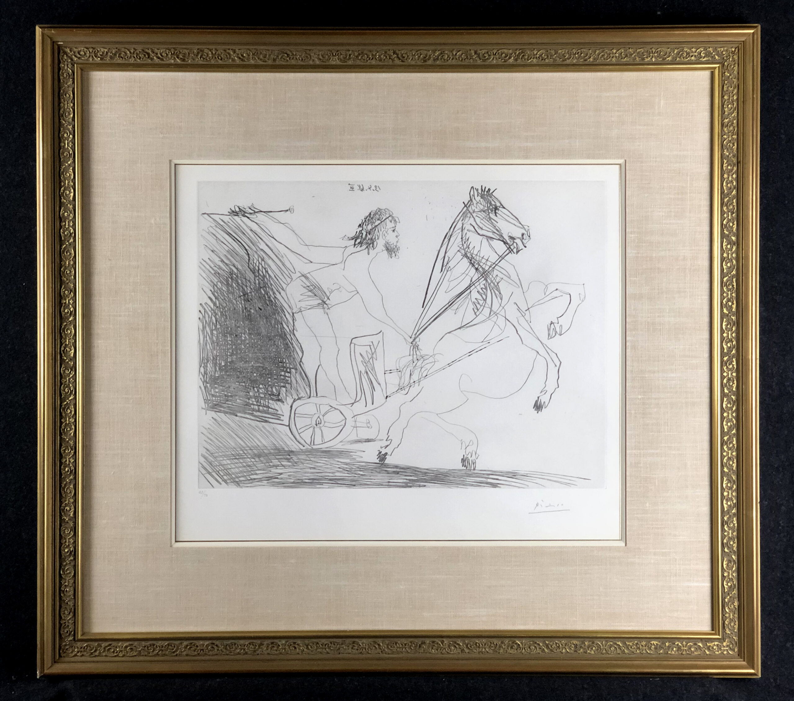 NotesThe 347 Series or 347 Suite is a series of etchings by Pablo Picasso executed between March 16 and October 8 1968. The work was Picasso's largest in terms of the number of individual prints in the series; and his penultimate large etching series before the 156 Series of 1969-1972. It was dedicated to his friend Jamie Sabartes. No name was given by Picasso to the series. The 347 series was first displayed at the Art Institute of Chicago and Paris's Galerie Louise Leris in 1970. Picasso was assisted by the Parisian printers Aldo and Piero Crommelynck, who had established an etching workshop near Picasso's Mougins residence.