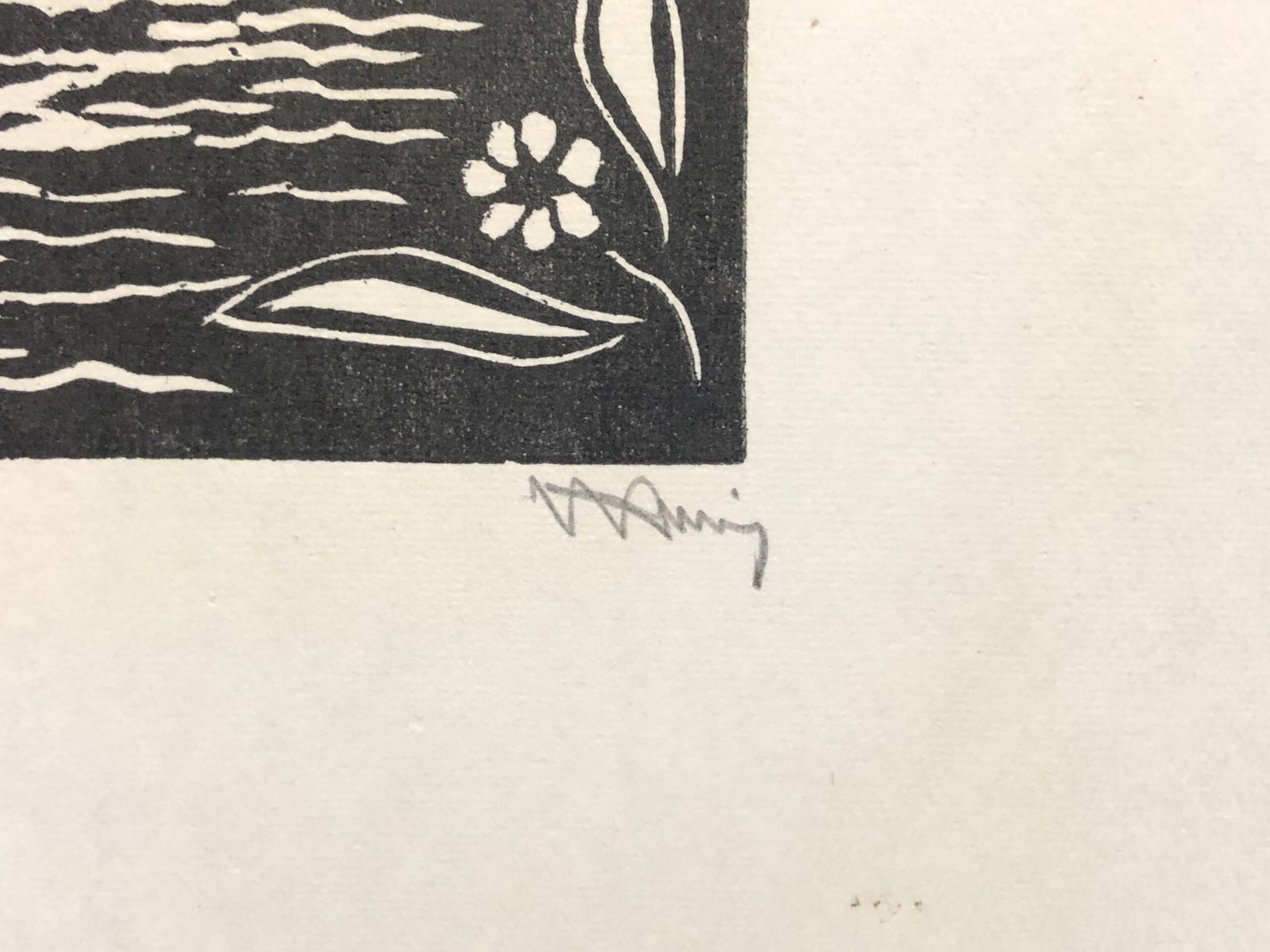 Monochrome woodcut, signed in pencil and annotated with title, printed on smooth, cream, wove paper. Near fine condition, tiny ink splatter during printing in the upper margin. Free shipping to US address.