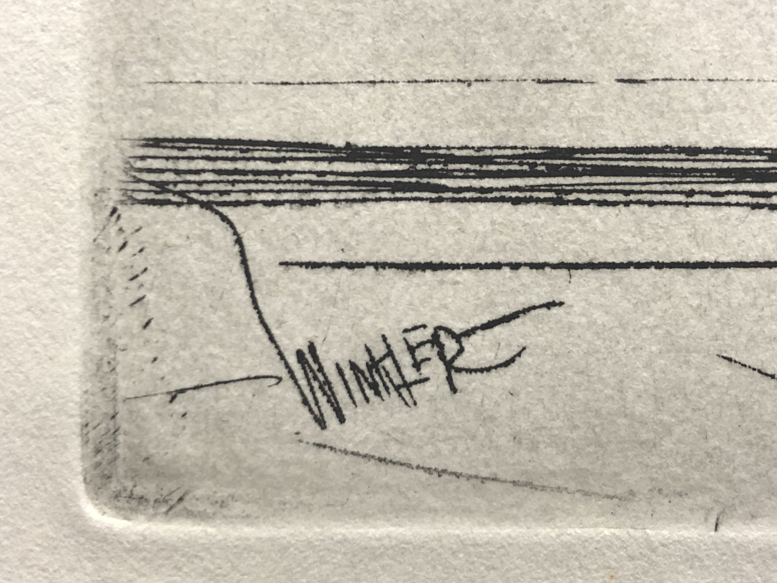 Departing for Europe in 1922, Winkler worked and roamed the countryside from England to France; it would be eight years before he returned to California. He was a member of the Chicago Society of Etchers, the Society of American Graphic Artists, the San Francisco Art Association and an honorary member of the Printmakers Society of California. Winkler was elected an Associate in the National Academy of Design in 1936 and to full Academician in 1951. One of the highest tributes he received was from his friend, John Taylor Arms, who proclaimed Winkler to be the "master of line," the "master of us all."