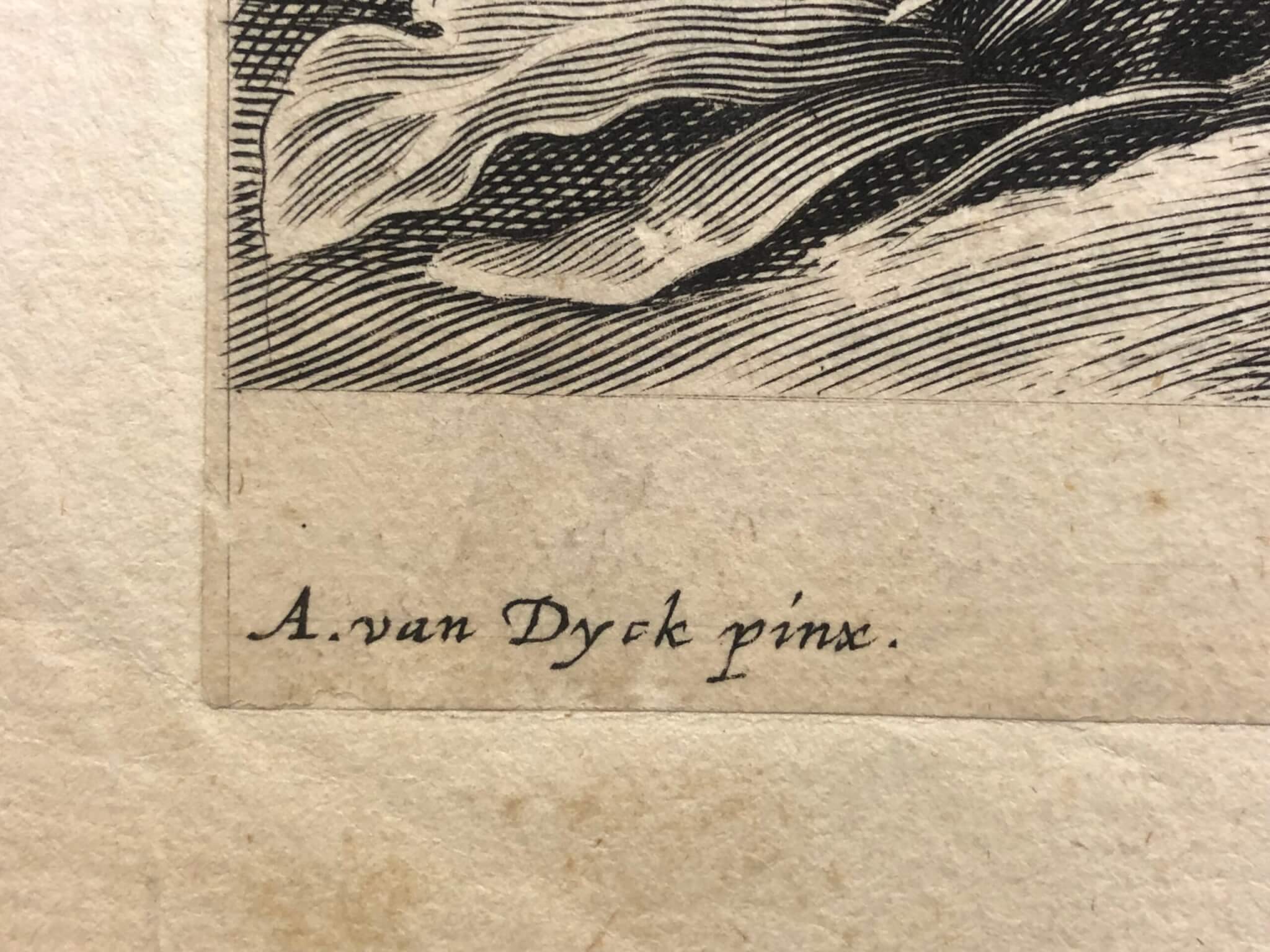 Engraving after the oil painting by van Dyck now in the Royal Museum of Fine Arts, Antwerp, Belgium. Printed on chine colle onto heavy laid paper, 1-inch margins. Very good condition, few surface defects. Free shipping to US address.