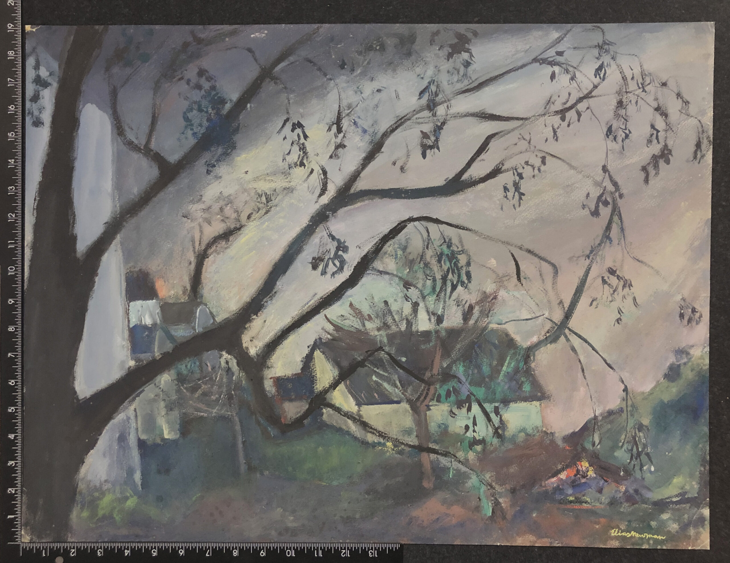 NotesElias Newman was a painter, writer, lecturer, and teacher in New York, N.Y. Born in Stashow, Poland in 1903, Newman arrived in the United States in 1913, and became a naturalized citizen in 1928. He studied at the National Academy of Design from 1919-1920, and at the Educational Alliance Art School from 1920-1925. He also studied at the Academie Chaumiere in Paris. After 1925, Newman participated in many exhibitions, acted as art director of the Palestine Pavilion at the New York World's Fair in 1939, organized the Palestine Artists and Sculptors Association, and was director of the National Society of Painters in Casein in 1963 and 1967-1971. From 1970-1975, Newman served as president of the Artists Equity Association, the organization which played the most significant role in his career.