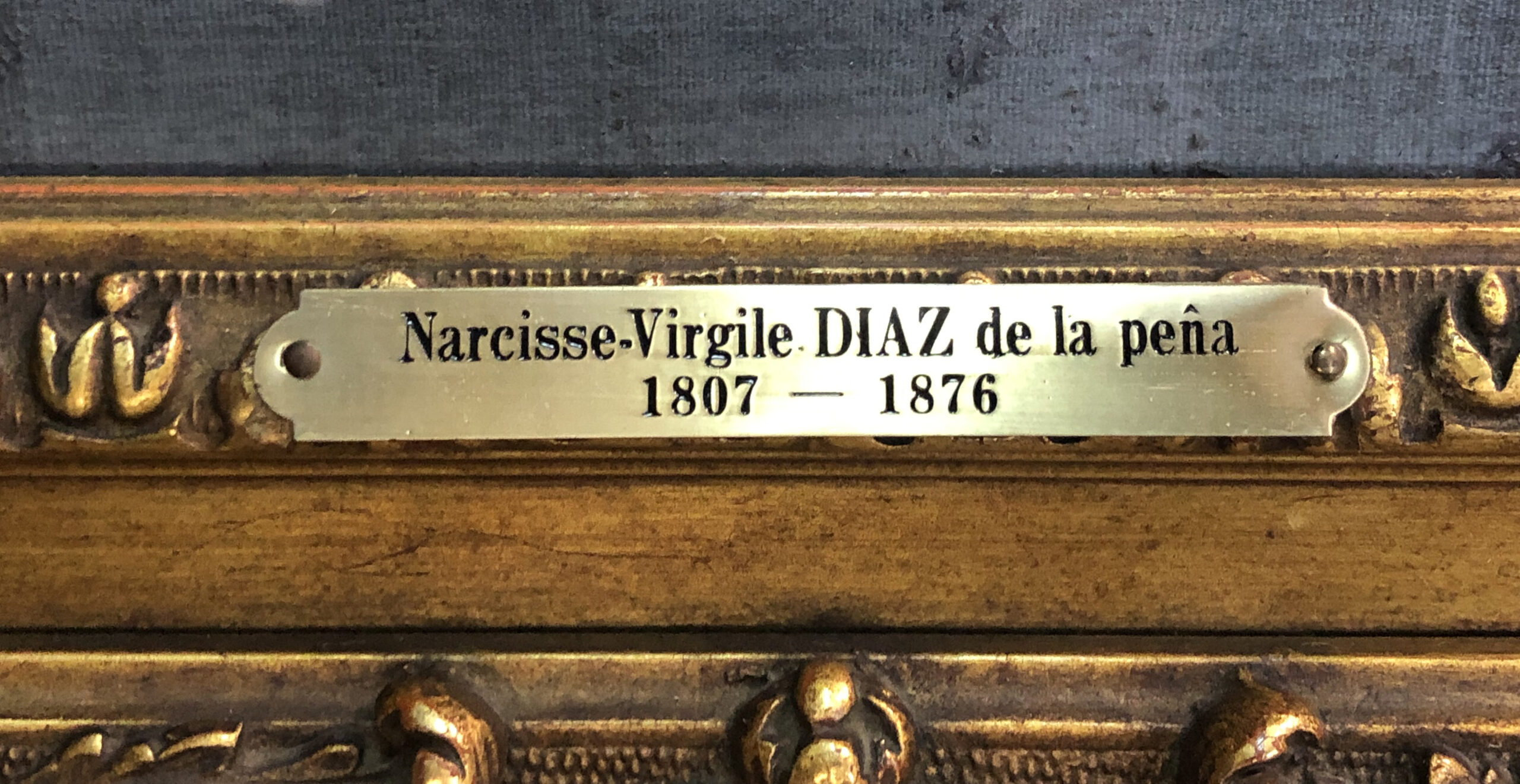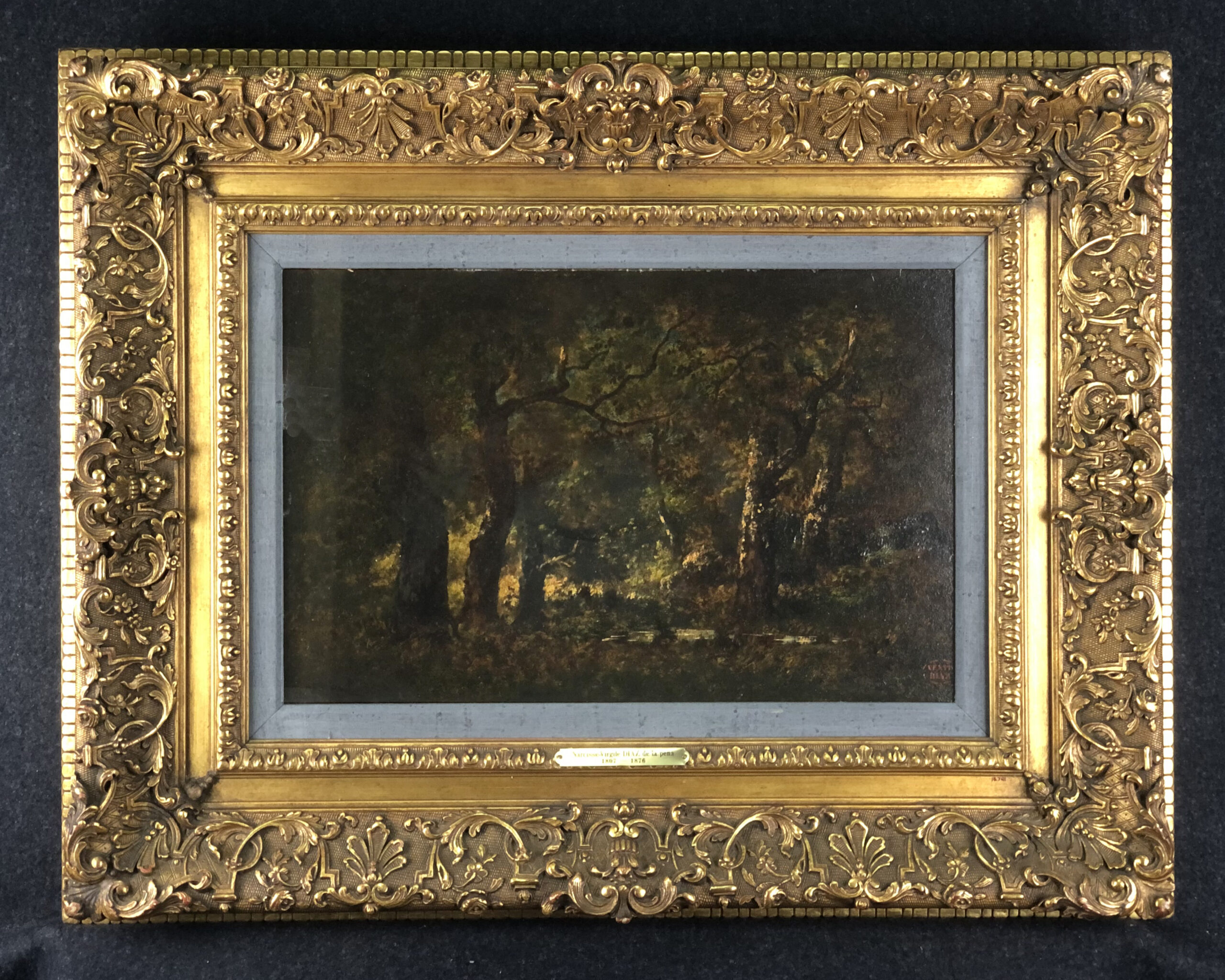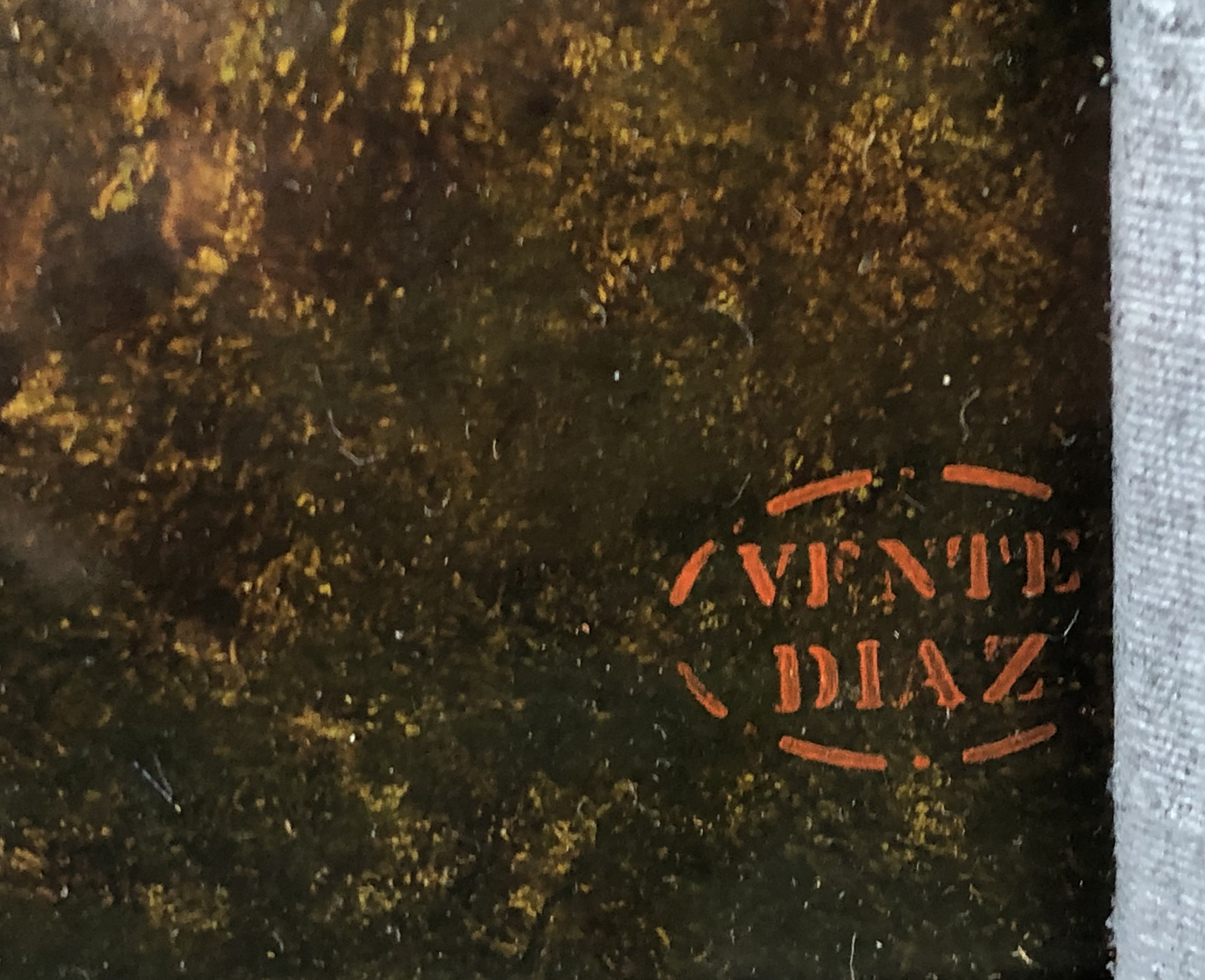 Oil on oak panel, unsigned, with the “Vente Diaz” red stamp in the image lower right.