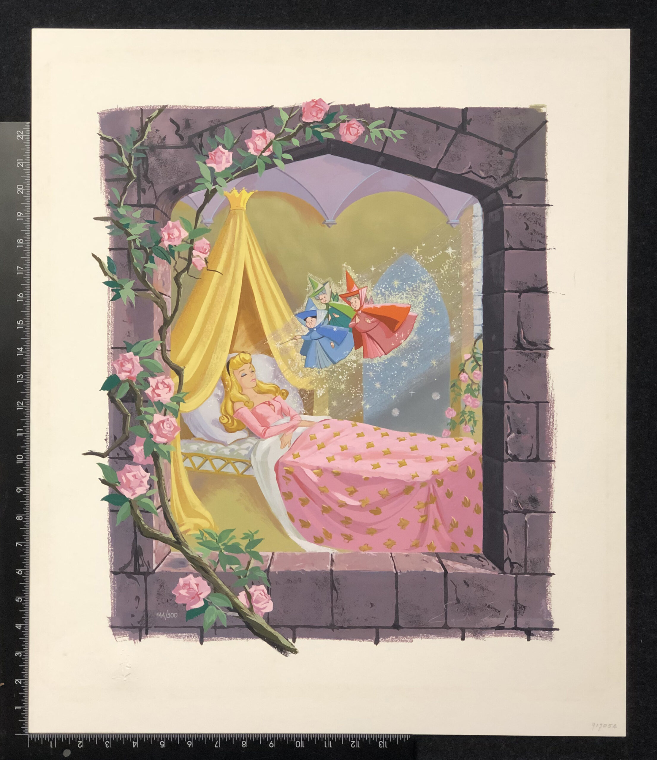 Screen print, signed in white ink and annotated “144 / 300”, printed by Team Art Studio on heavy, smooth, white, thin museum board, 26 X 22 inches sheet. Published by Walt Disney Art Classics, with their embossed stamp al lower left, total edition 355. Rare. Fine condition. Free shipping to US address. (lff-m-rt)