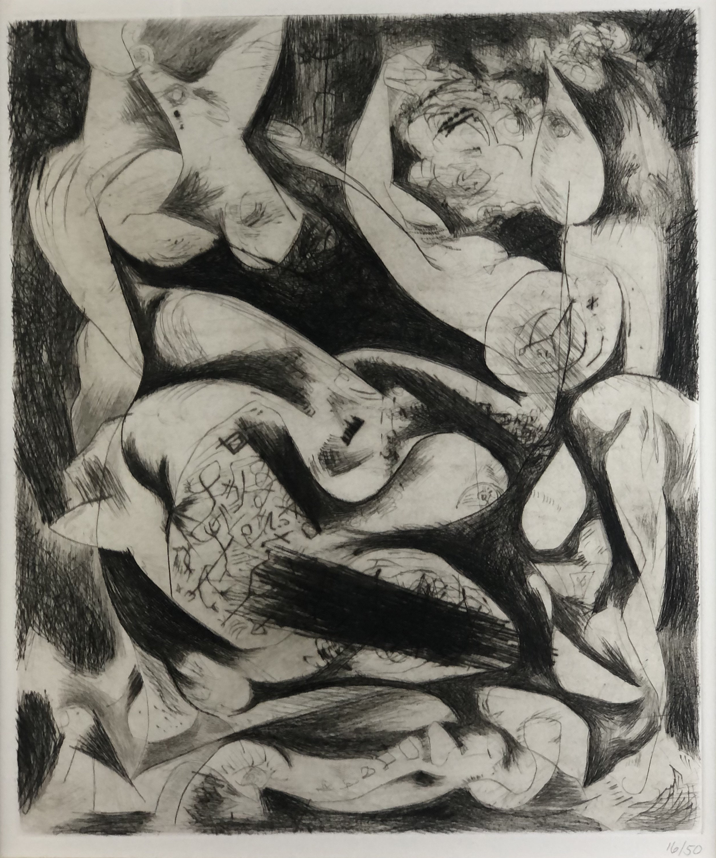 Engraving and drypoint on white Italia paper, unsigned, annotated in pencil “16/50” lower right, with the embossed drystamp of the Estate of Jackson Pollock.