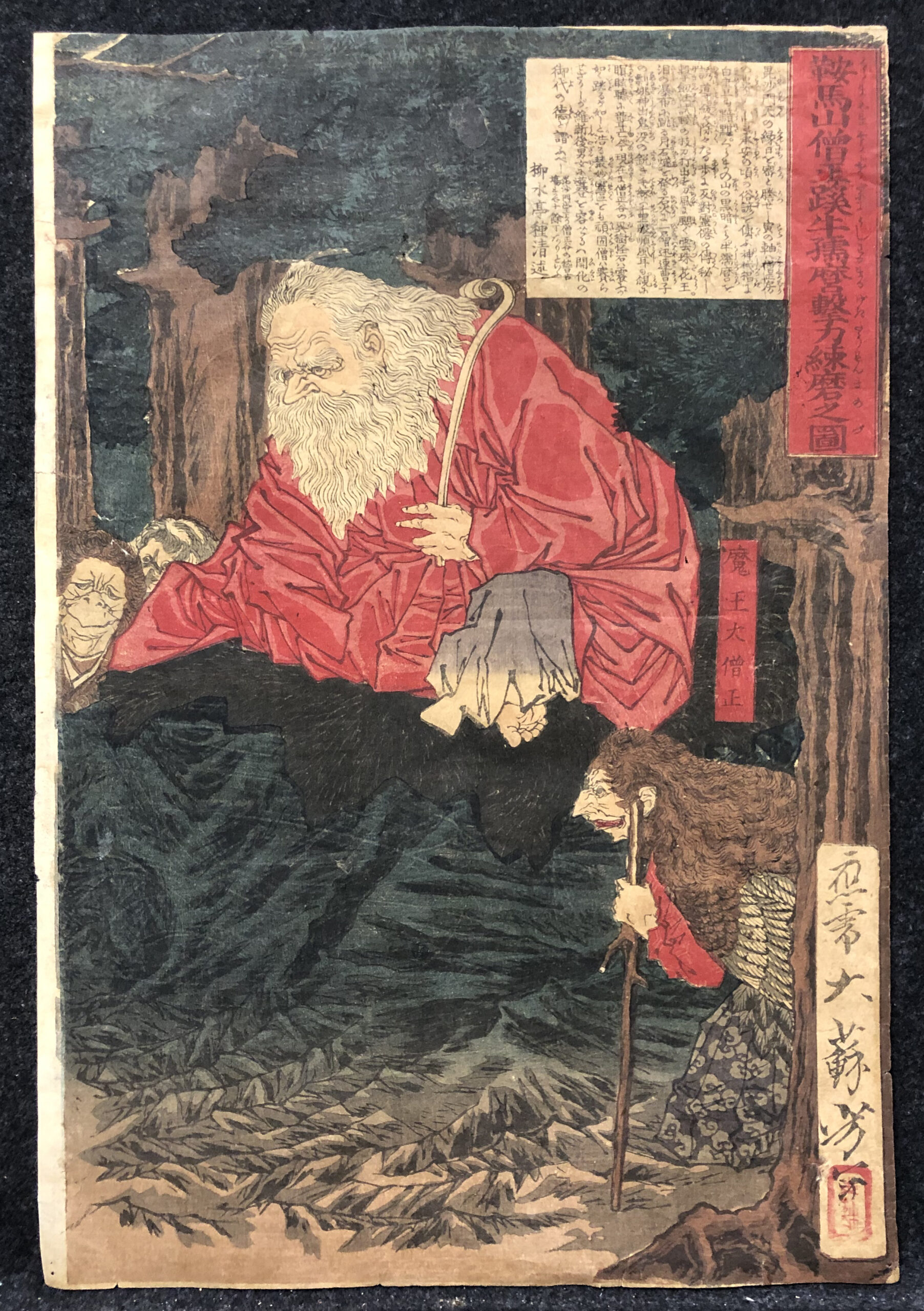 NotesTsukioka Yoshitoshi (Japanese: 月岡 芳年; also named Taiso Yoshitoshi 大蘇 芳年; 30 April 1839 – 9 June 1892) was a Japanese printmaker. He has widely been recognized as the last great master of the ukiyo-e genre of woodblock printing and painting. He is also regarded as one of the form's greatest innovators. His career spanned two eras – the last years of Edo period Japan, and the first years of modern Japan following the Meiji Restoration. Like many Japanese, Yoshitoshi was interested in new things from the rest of the world, but over time he became increasingly concerned with the loss of many aspects of traditional Japanese culture, among them traditional woodblock printing.