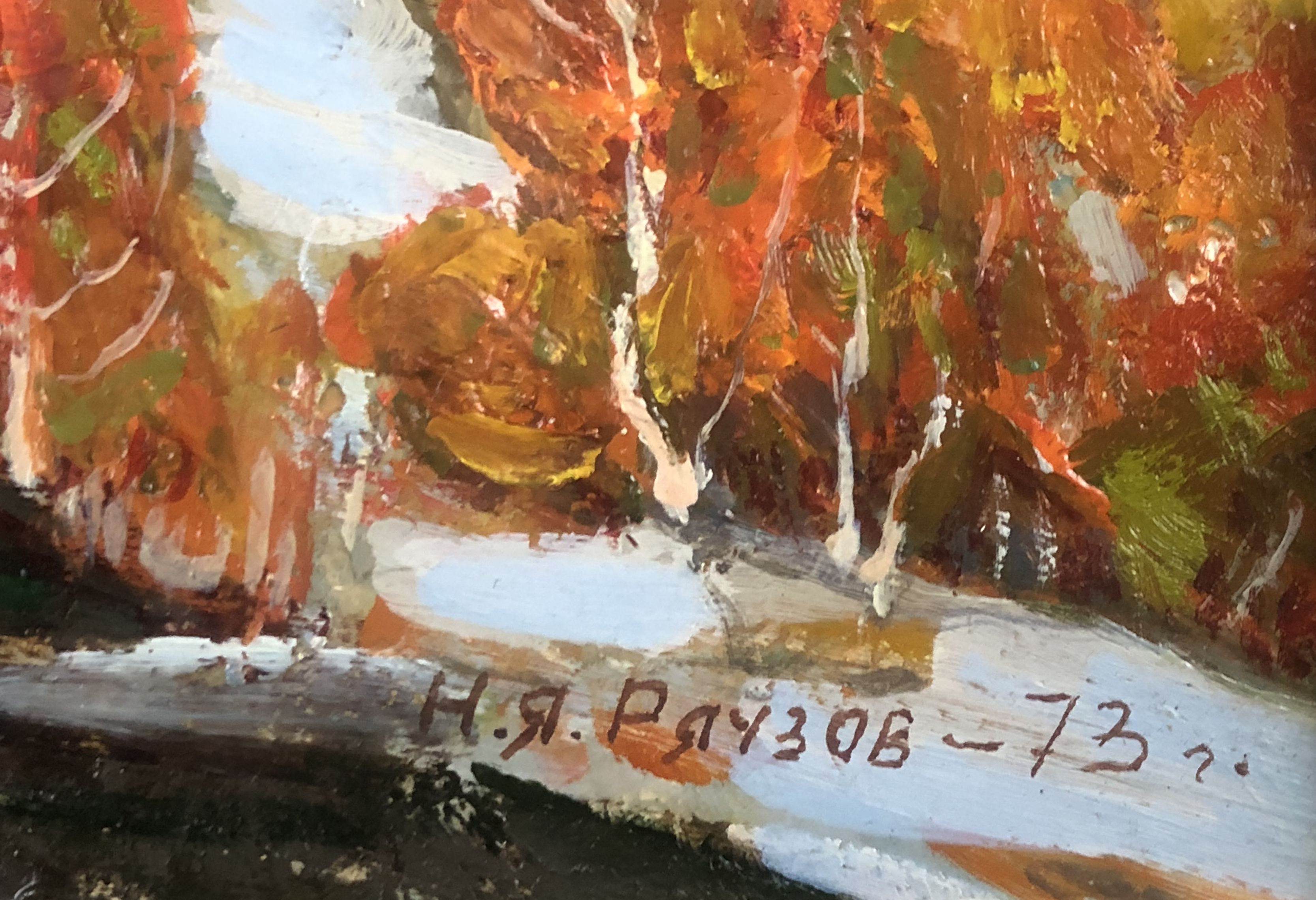 Notes Nikolay Ryauzov was born in 1923 in the village of Biruchiy Spit, lkryaninsky district of the Astrakhan region of Russia. He studied under the direction of B. J. Rausova. Primarily a landscape painter, he exhibited extensively in the Soviet Union since 1960. He was a member of the Union of artists of the USSR. Major works: landscapes devoted to Krasnoyarsk at the Krasnoyarsk regional art gallery.