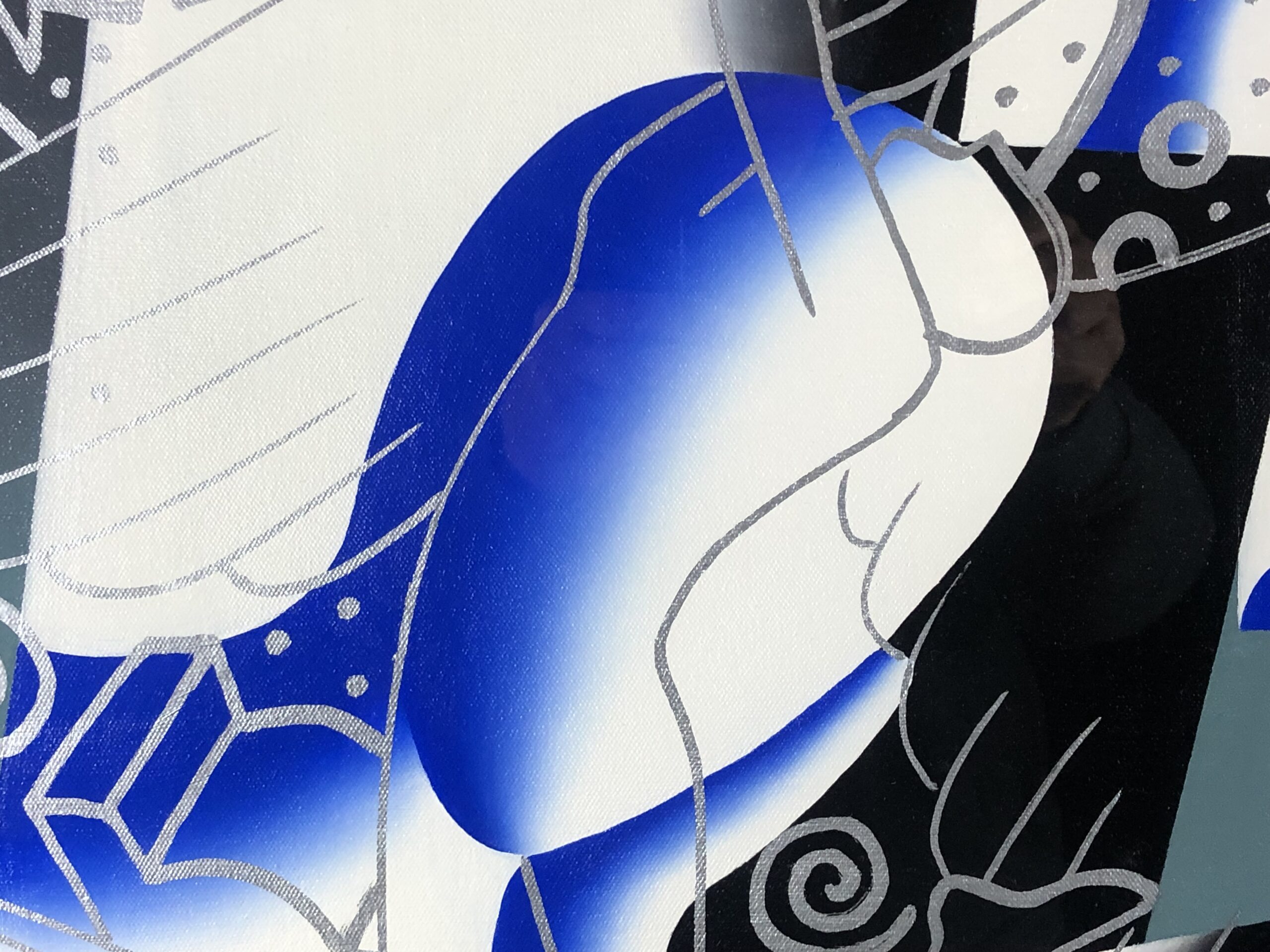 Acrylic air and hand brush on canvas, signed and dated lower right.