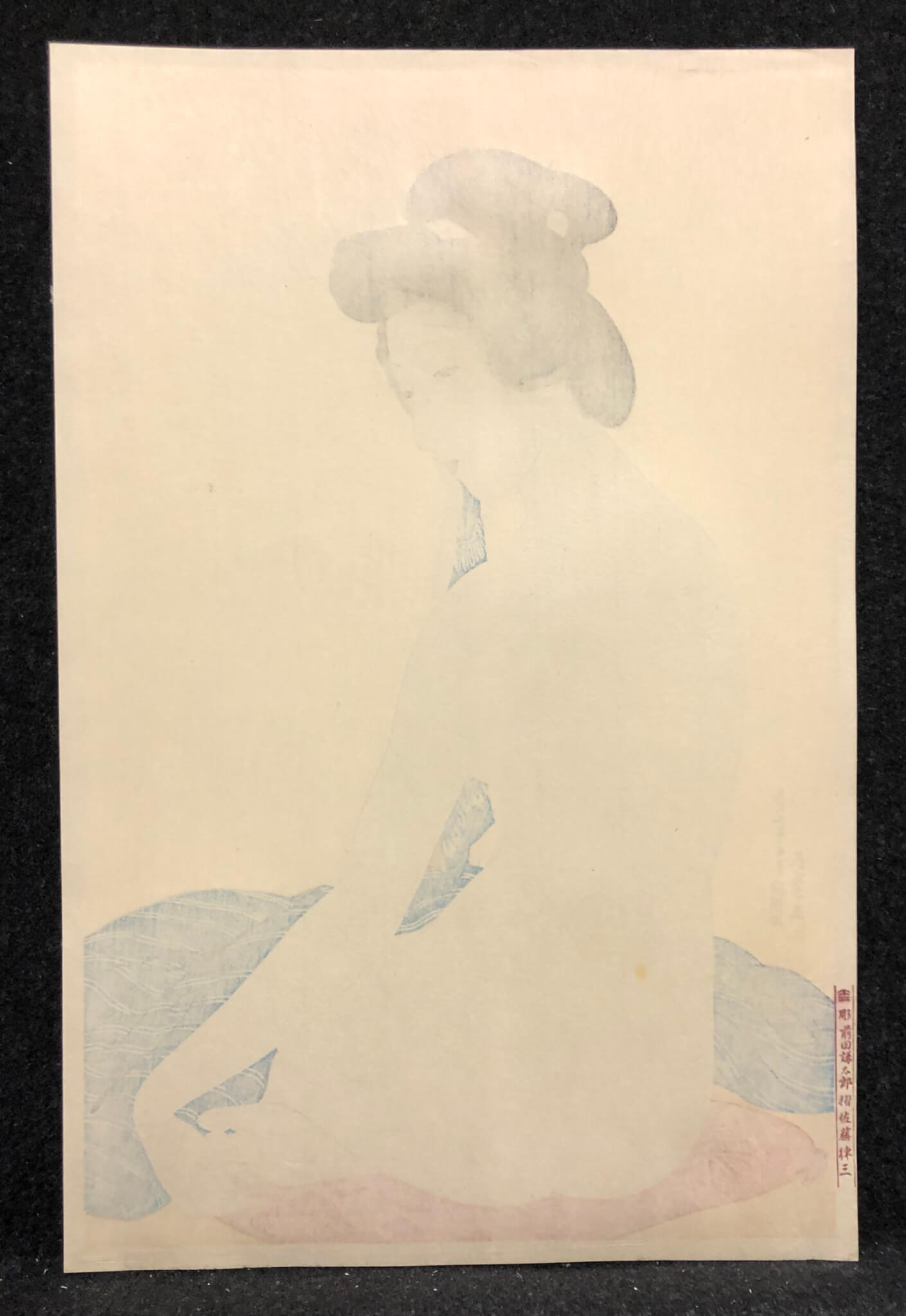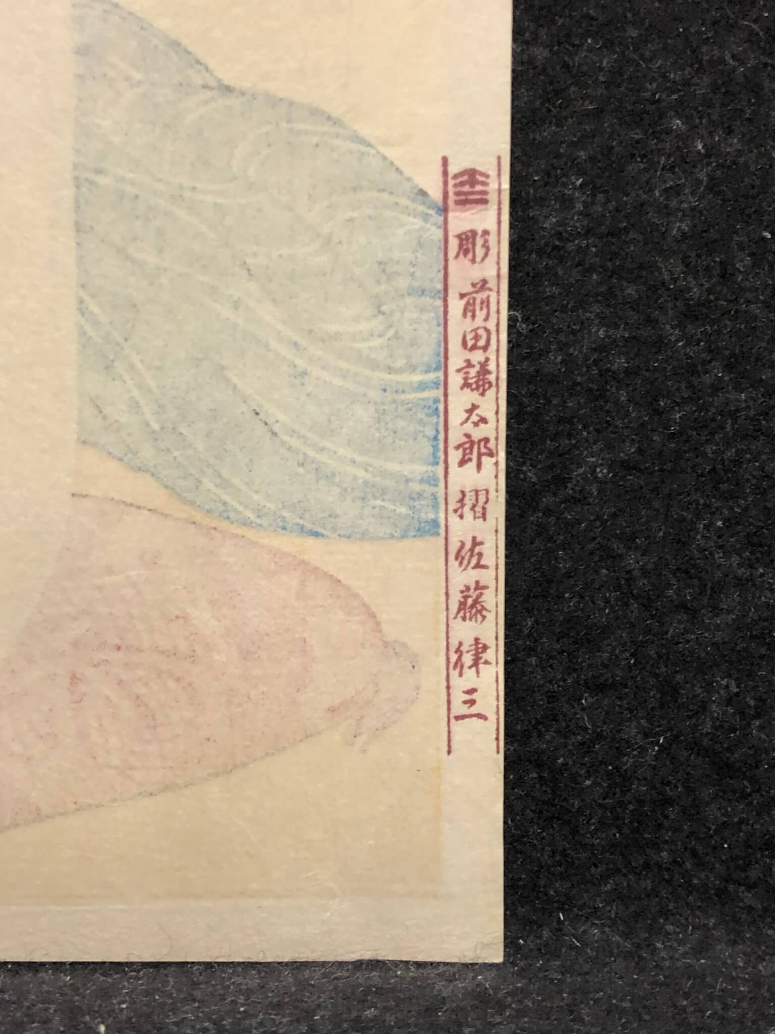 On February 24, 1921, Goyo died from an ear infection, the aftermath of a severe case of influenza. His death at so early an age was a tragedy to the art world. Goyo’s entire artistic career spanned 15 short years, of which only the last five were as a Japanese woodblock artist. He completed only 14 prints. At his death, Goyo left many works in various stages of completion. Some were all but finished, with full-color proofs already completed; for others, the key block impressions had been taken, and still others had barely progressed beyond the preliminary sketches. Members of Goyo’s family brought these unfinished materials to fruition.